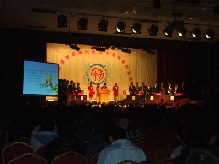 11月26日晚,老员工活动中心张灯结彩,欢声雷动,物理与电子信息工程系在此举办了“青春追逐梦想,知识改变未来”物电知识竞赛,物理与电子信息工程系系主任刘宝盈、党总支书记张秦中等领导与部分老师同500余名员工一同观看比赛。