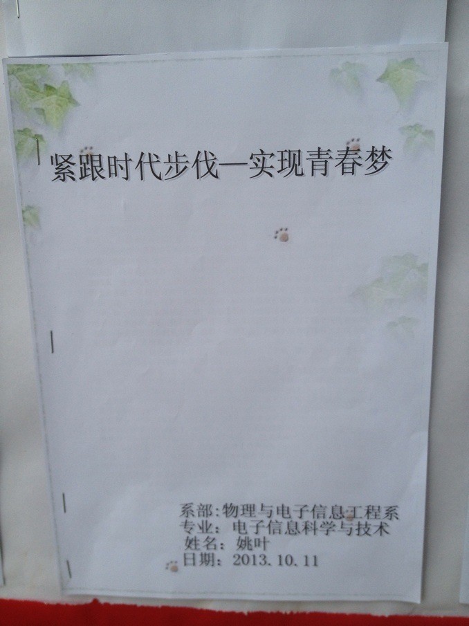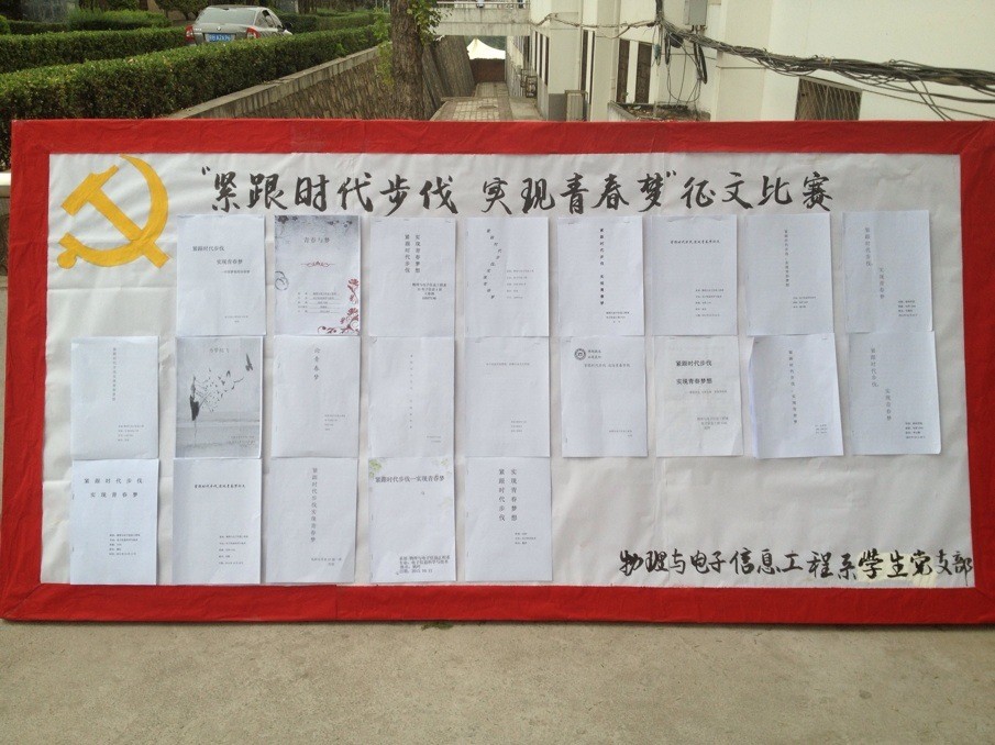 为了丰富我系员工党员课余文化生活,提高员工党员自身文化素养,物理与电子信息工程系员工党支部围绕“紧跟时代步伐,实现青春梦”的主题举办了本次征文活动。
