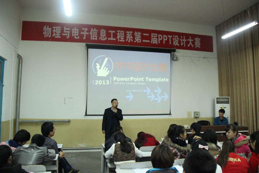 11月17日晚,物理与电子信息工程系在二号教学楼多媒体17教室成功举办了第二届“青春 梦想”PPT设计大赛。莅临本次大赛的领导是物理与电子信息工程系党总支书记张秦中老师,物理与电子信息工程系团总支书记陈倩老师、系辅导员魏书灵老师、辅导员李磊老师,以及博士袁训锋老师、汤引生老师、赵杰老师、杨琳老师分别为本次大赛的评委老师。