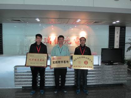 在签订协议、安排员工专业实习的基础上,公司在瑞仪光电(苏州)有限公司建立了电类专业实习基地。2013年11月17日,受公司委托,我系派出两名教师代表公司在苏州吴江市瑞仪光电(苏州)有限公司办公大厅举行“英国365公司官网瑞仪光电(苏州)有限公司人才培养基地”与“英国365公司官网实践教学基地”授牌仪式,这标志着我系完成2013年非教育专业实践教学基地建设任务。