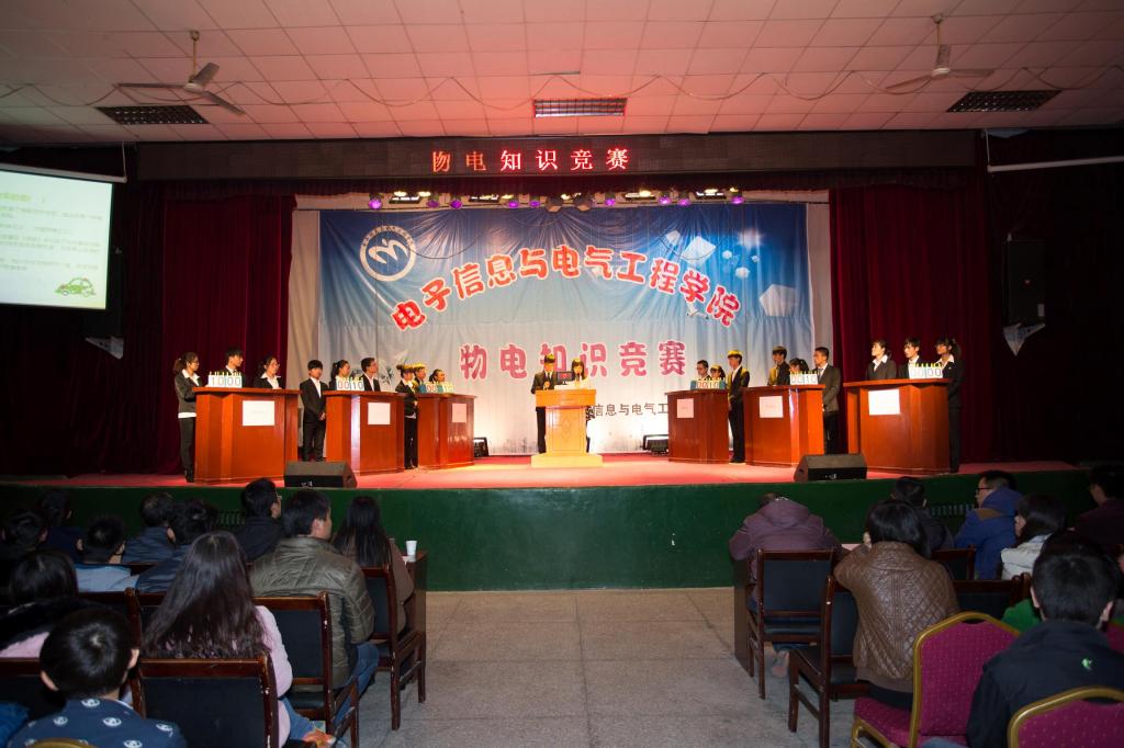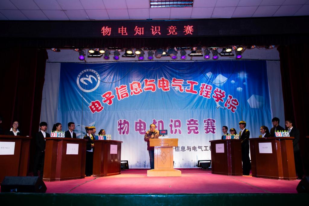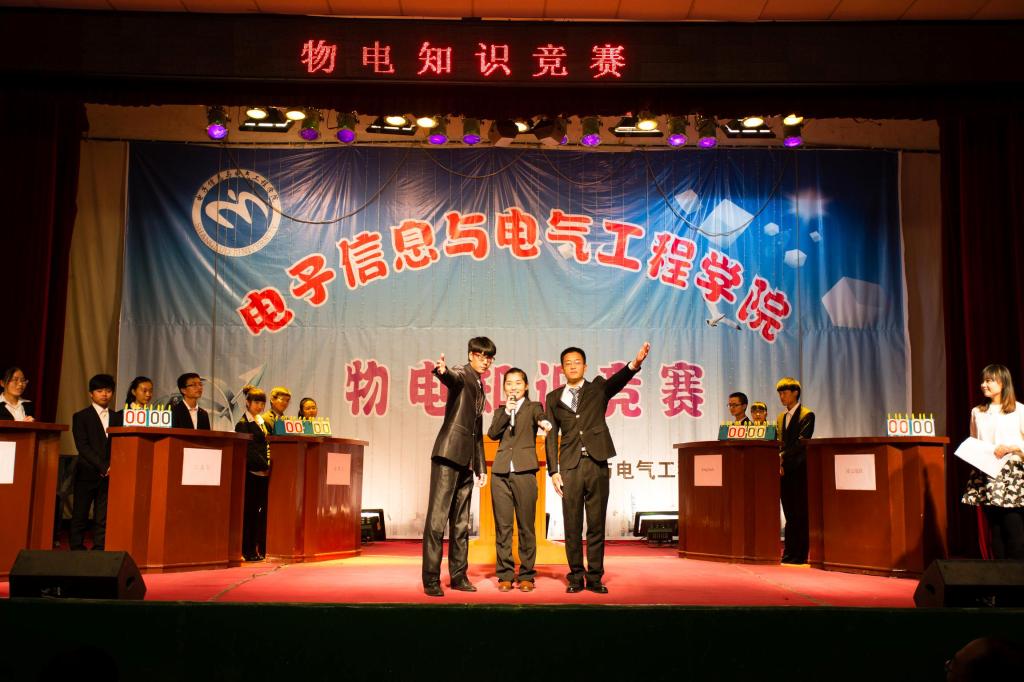 比赛初,李鸿浩向大家解说了公司院徽的设计理念及其含义,让大家充分了解了公司院徽的意义。经过了层层选拔,共18位选手进入决赛,他们分为六组,每组三人。比赛开始后,每组带着自己独特的组名,响亮的口号,富含创意地有序出场。进入紧张的竞赛环节,在第一轮“步步为营”环节中,每组都分别有一道选择题、简答生活物理现象、解释物理原理,凭借扎实的物理功底,平日里的认真观察,各个队都出色的地答对了题目;第二轮的“争分夺秒”扣人心弦,其中胡东东本着敏锐的思维,赢得了观众阵阵掌声。一首《真心英雄》缓和了现场气氛,经过短暂的休息,第三轮“耳急手快”,进入抢答环节,选手抢答有序;第四轮“扭转乾坤”,解释成语的含义及其所运用的物理知识,展现了物理知识在生活中的广泛应用。