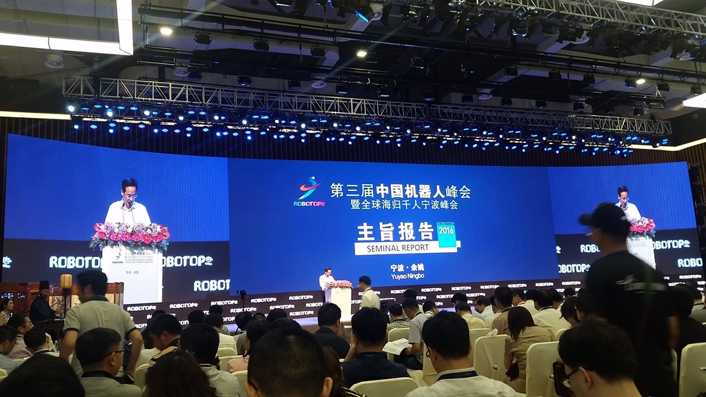 中国机器人峰会是国内规模最大、最具影响力的机器人盛会,被认为是机器人技术研究、产业发展的“风向标”。本届峰会以“人机融合,让机器人更智能”为主题,由宁波市人民政府、中国机电一体化技术应用协会、中国兵器北方科技信息研究所联合主办。中共宁波市委组织部(市委人才办)、宁波市经信委、宁波市科技局、余姚市人民政府、《机器人技术与应用》杂志社承办。