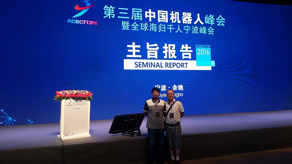 6月13日至14日,第三届中国机器人峰会暨全球海归千人宁波峰会在余姚市四明湖国际会议中心举行。公司经理助理陈垚,教师代表唐卫斌参加了此次盛会。