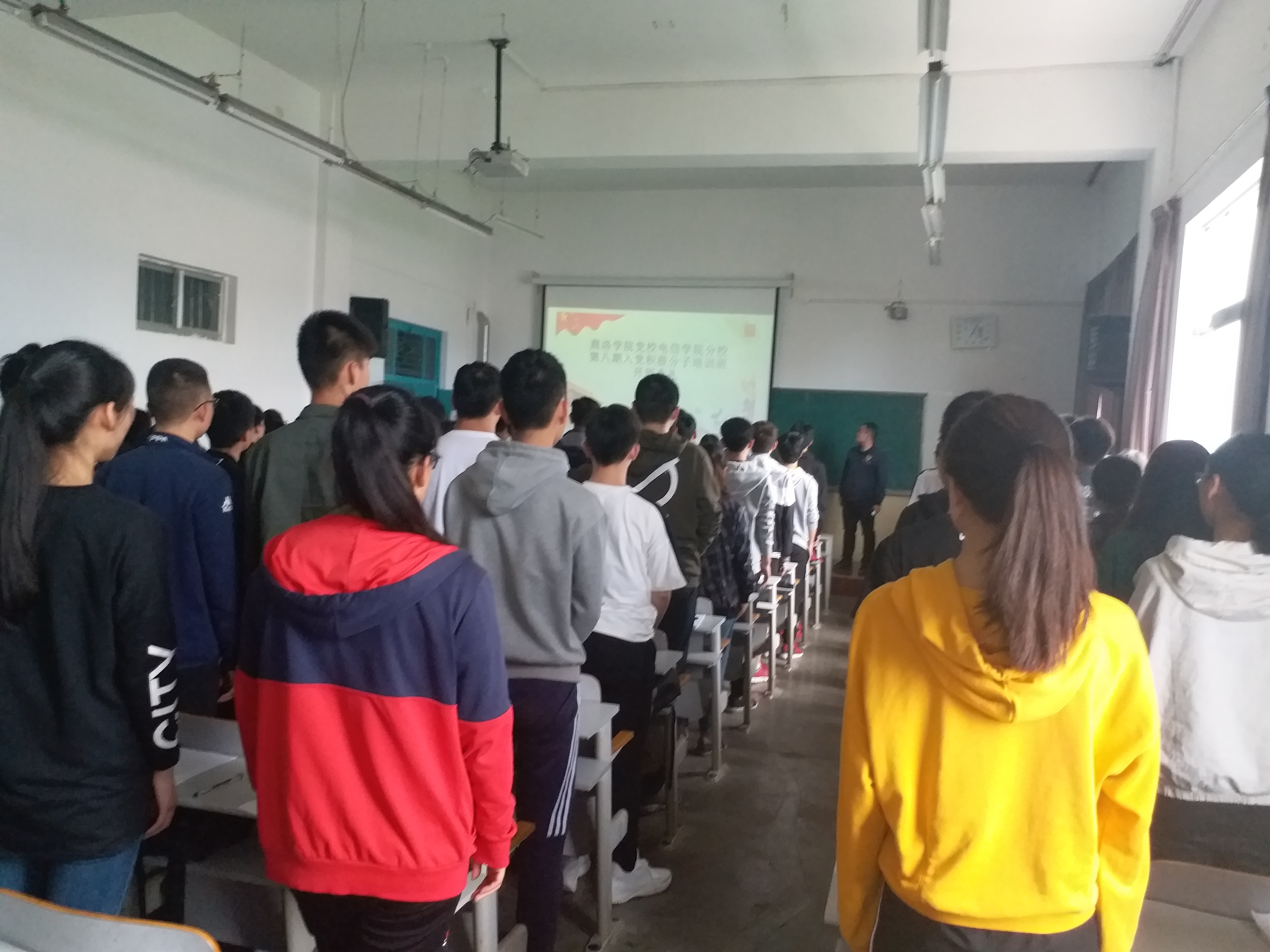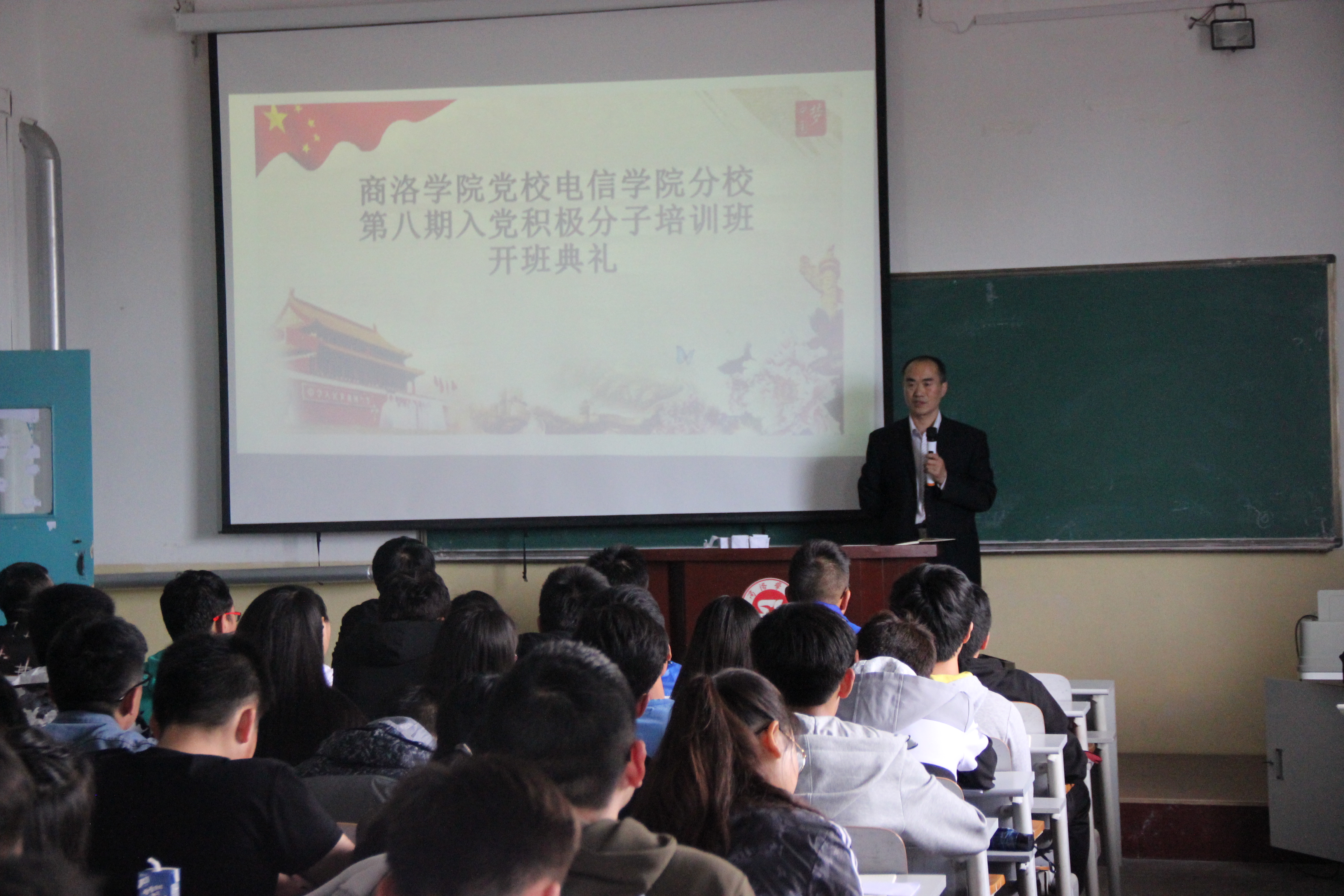 典礼开始,全体肃立,奏唱中华人民共和国国歌。陈垚为开班典礼致辞,他向学员们简要介绍了此次培训的课程安排,并指出,参加入党积极分子培训班对党课学员来说不仅是一次难得的学习机会,也是政治生活中的一件大事,更是在人生道路紧要关口迈出的关键一步,希望同学们严守培训纪律,积极参与讨论交流,珍惜这次难得的学习机会,顺利通过结业考试。