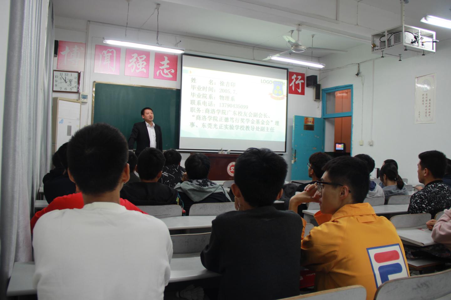 9月29日晚,英国上市公司365邀请广东省东莞市光正实验公司的徐吉印来校举办招聘宣讲。本次宣讲会在2#201教室举行,物理学2015级部分同学参与了本次招聘。报告会由公司党总支书记李英主持。