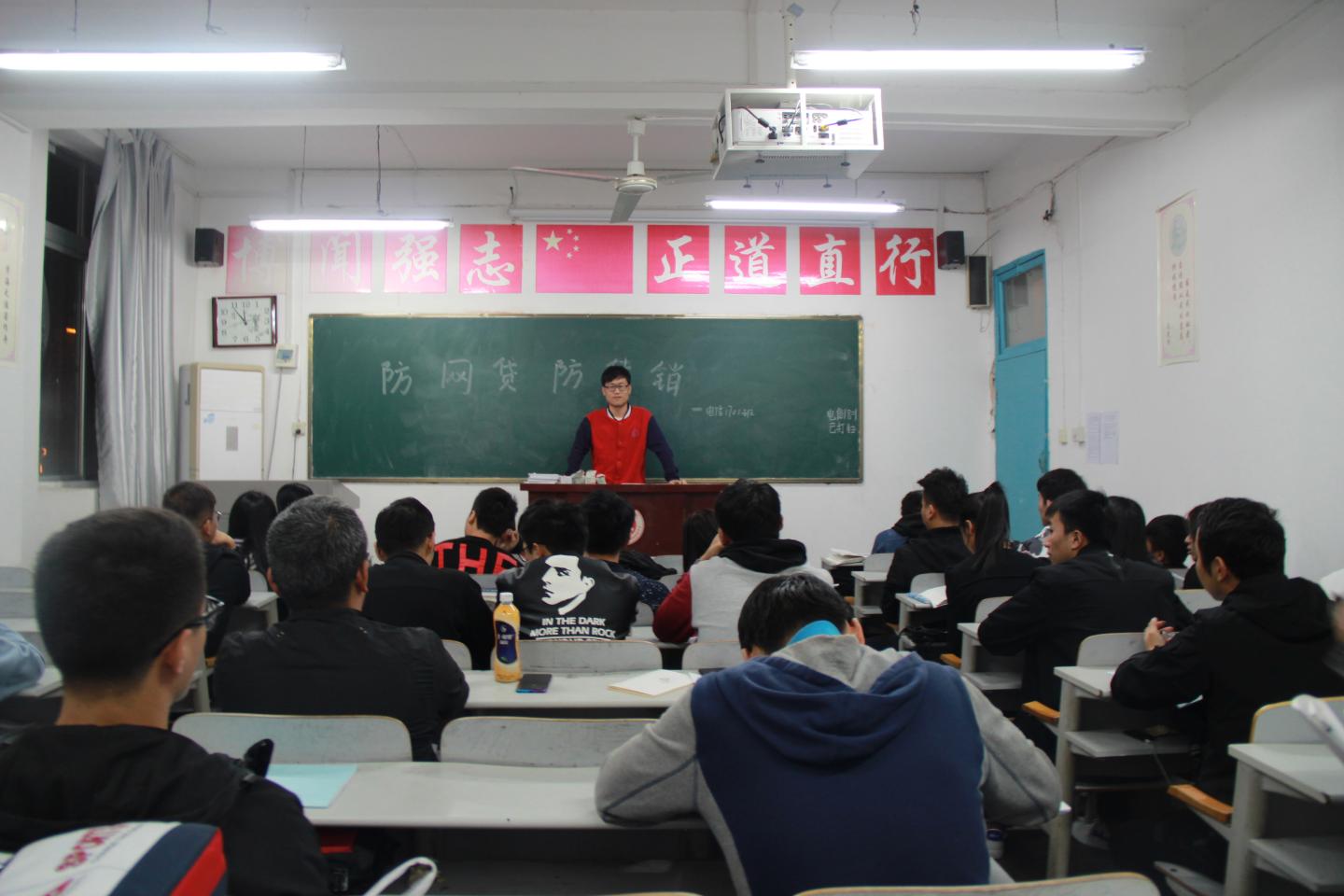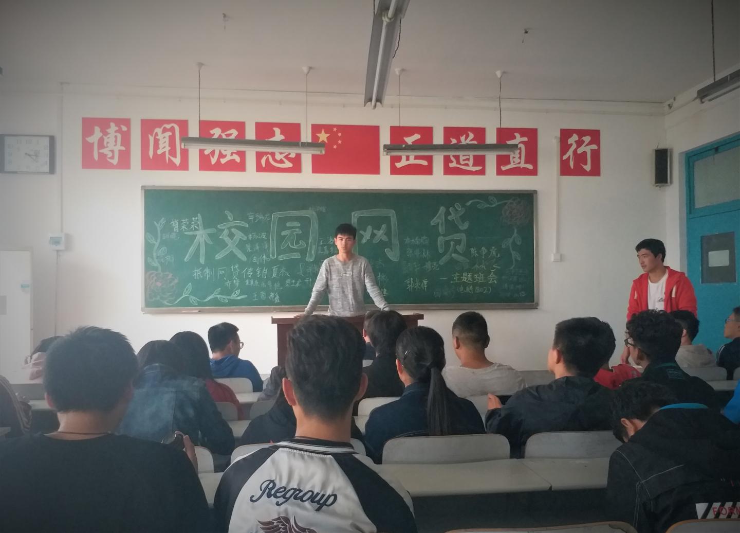 此次班会以宣传为契机、借周日班会时间,由各班班委主讲,向大家讲解了有关贷款的法律法规政策要求,揭露了校园网贷违法的本质。通过ppt等多种方式,让同学们了解到有关网贷和传销的相关案例及视频,以“禁传销、反网贷”为切入点认真分析了传销与网贷对当代老员工及社会的种种负面影响。大家纷纷表示要做到本人决不参与网络借贷,决不参与网络传销,决不参与传销活动,决不参与网络借贷宣传,决不作为“内线”介绍同学参与网络借贷。