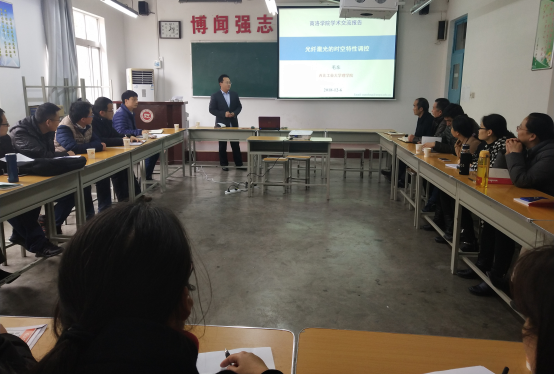 报告会上,第一部分毛教授从低纬纳米材料非线性光学特性、新型可饱和吸收器件、激光器的色散及非线性效应控制等原理方面对激光器件的空域和时域进行调控;第二部分毛教授通过自己申请的3项国家自然科学基金经验,指导电信院老师申请国家/省自然基金申请时需注意的一些事项。报告结束,参会教师与毛教授进行了积极的互动交流,就自己在科研中存在的问题与毛教授展开了充分的探讨交流。