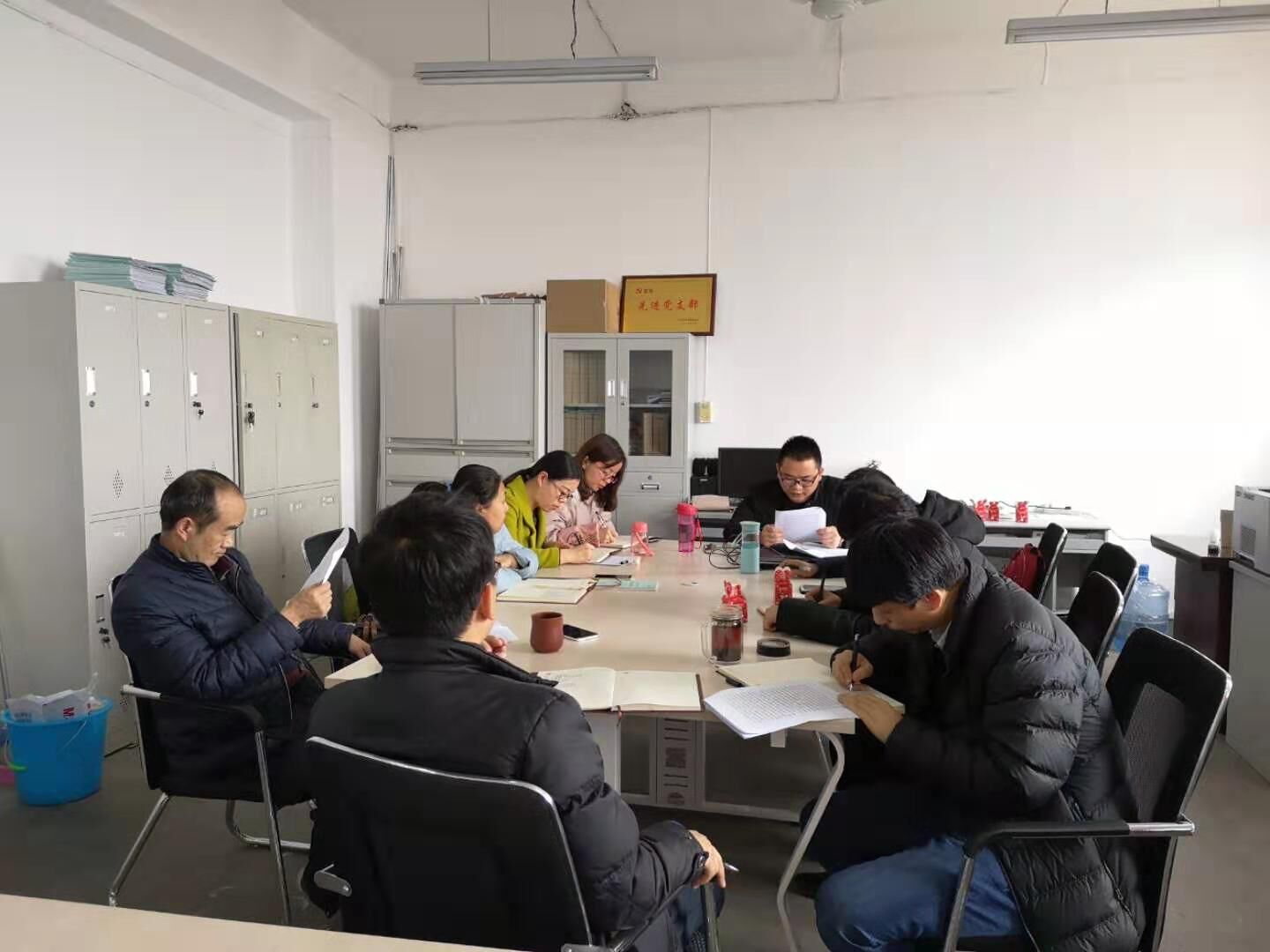 学习完毕,全体党员对党员活动室及周边彻底清扫,美化环境,营造新年新气象。