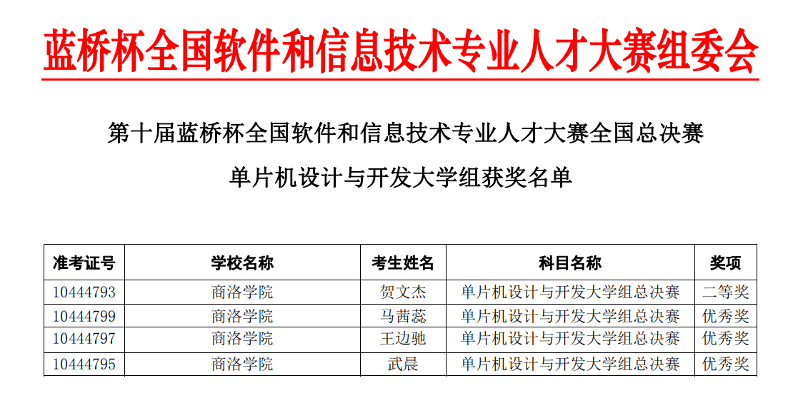 5月25日,第十届“蓝桥杯”全国软件和信息技术专业人才大赛总决赛在北京举行。公司教师何建强带领贺文杰等4名获得省赛一等奖的员工赴北京首都经济贸易大学考点参加全国总决赛,最终获得单片机开发组国家二等奖1项,优秀奖3项,取得了公司参加该项竞赛以来的最好成绩。