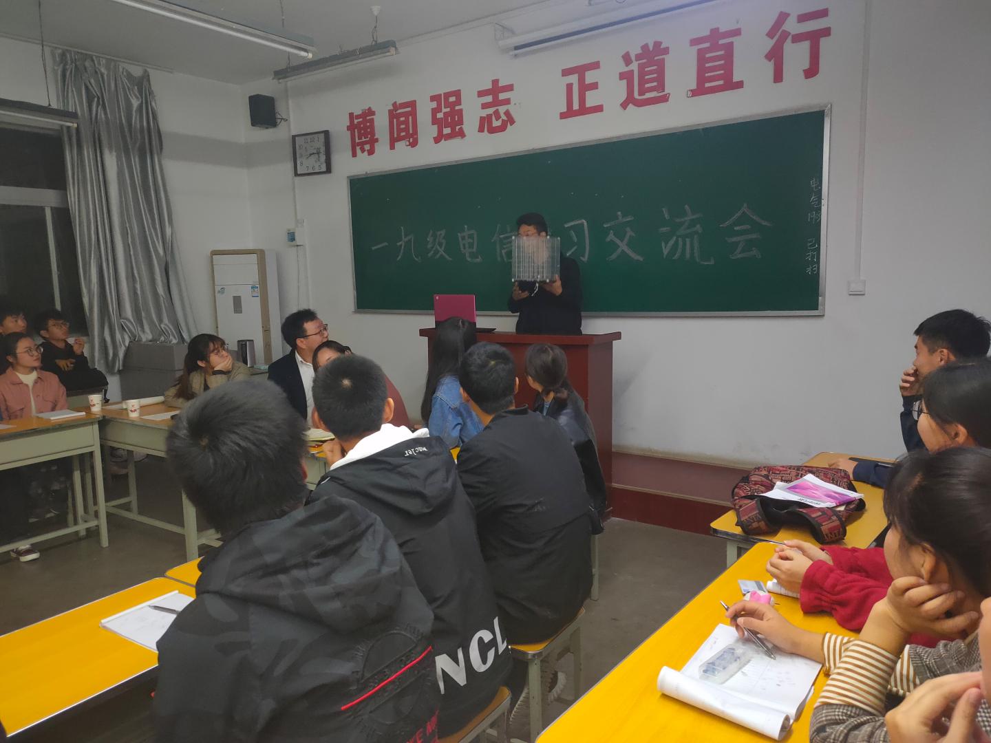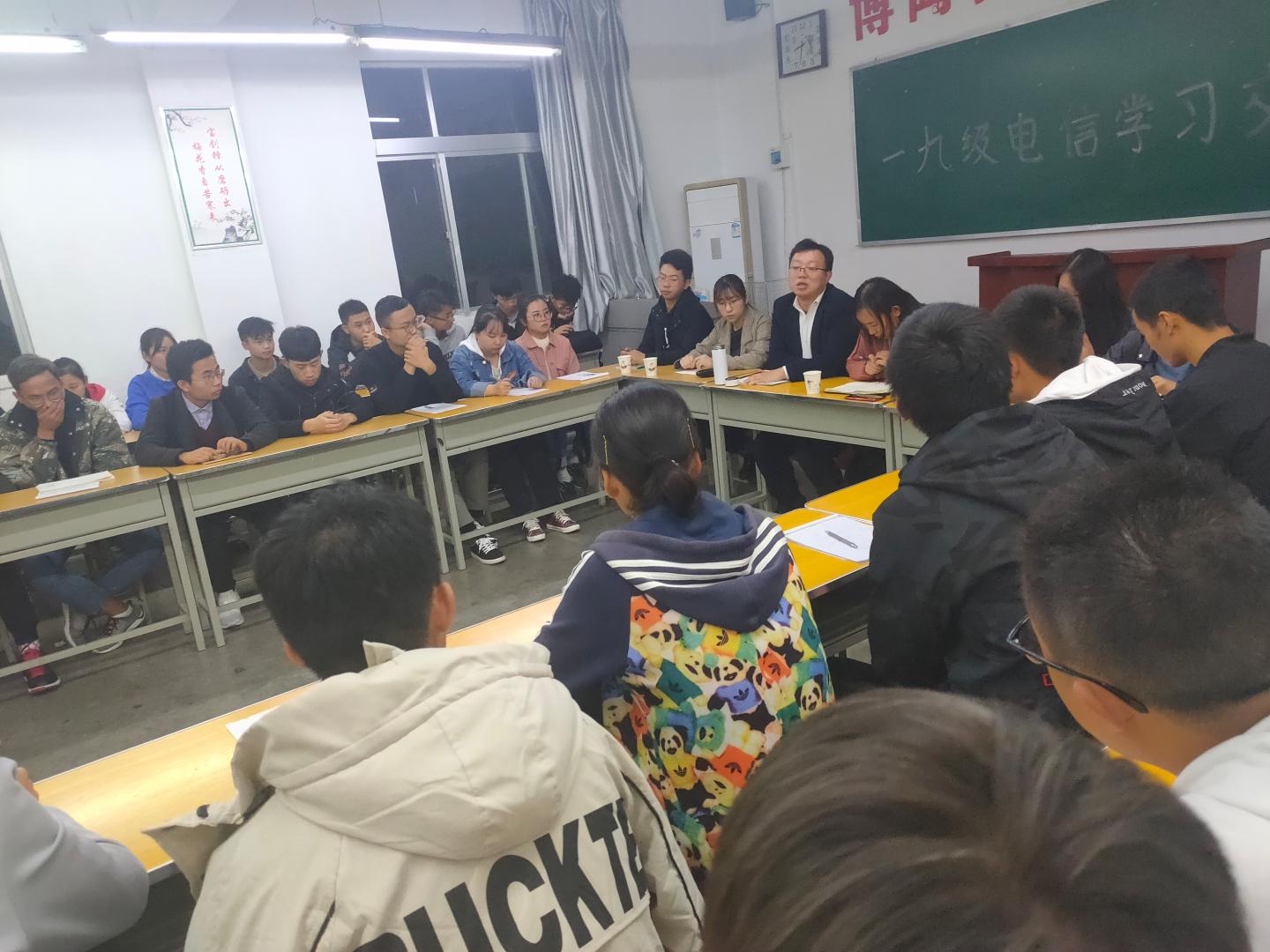 11月3日晚,英国上市公司365在2号楼210教室组织召开2019级电子信息工程专业学习经验交流会。会议由电信1902班主任袁训锋老师主持。电信1901班主任张娜老师出席会议。电信2017级巩若琳、李娜、杨化俊和2018级王磊等4位高年级同学受邀参加学习经验分享,电信1901、1902全体同学参加会议。