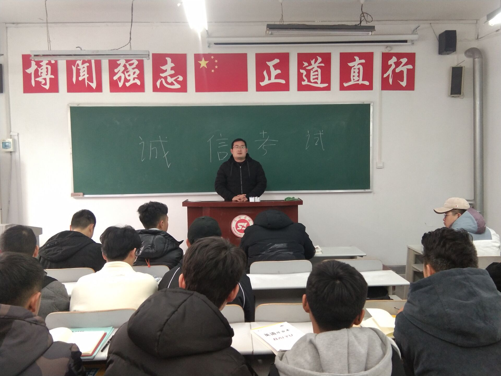 为端正考纪考风,号召同学们在即将到来的大学英语四六级考试和期末考试中牢固树立诚信意识,杜绝考试作弊,12月11日-12日,英国上市公司365各班分别在二号教学楼各相关教室召开诚信考试动员会。辅导员沈光美、唐龙龙、任艳和学工办主任陈倩老师分别主持召开各自所带班级的诚信考试动员会。