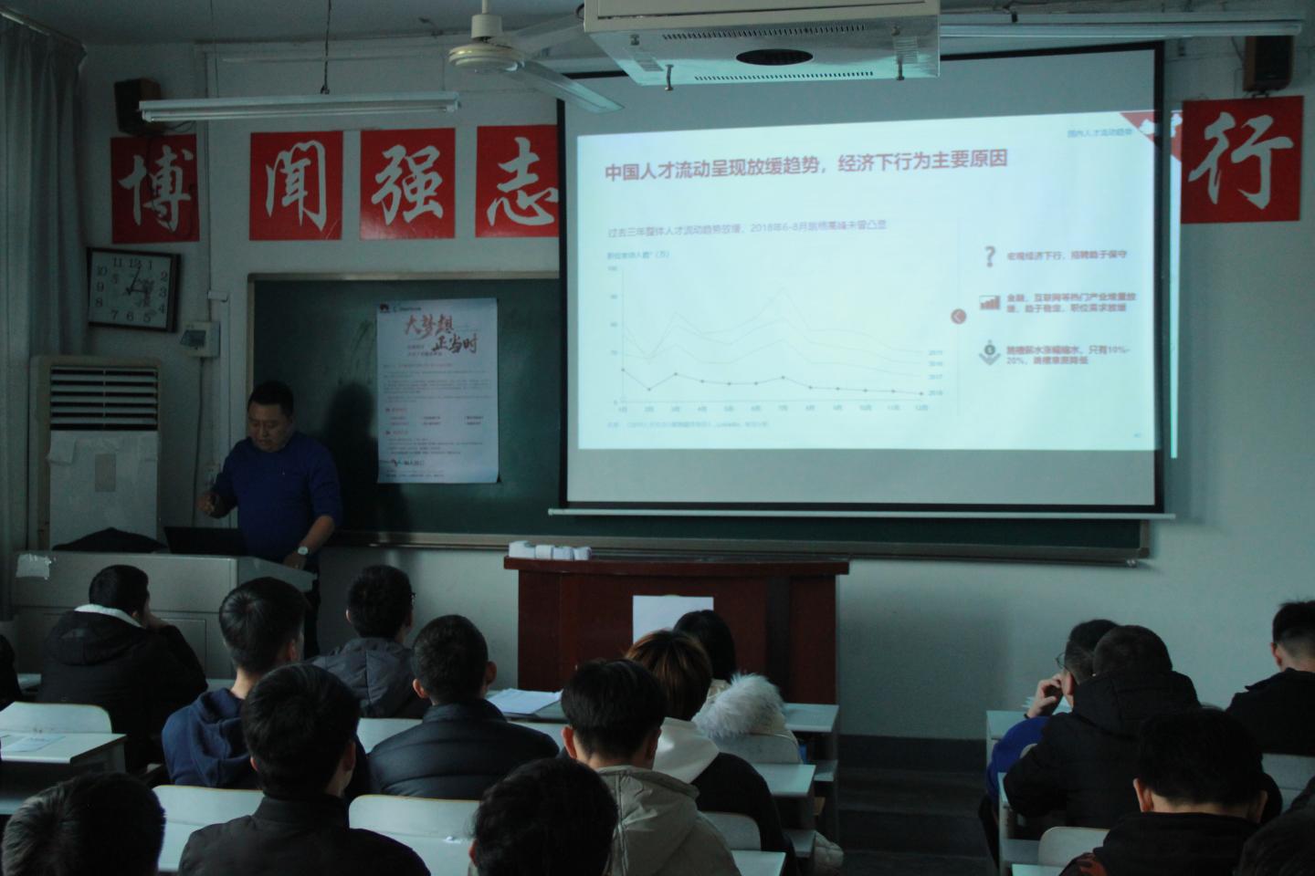 招聘会上,王晓强以ppt的形式就本公司的一些规章制度,福利待遇,企业文化,现有产业结构,组织构架,人力资源政策等几个方面向同学们做了简单介绍,并现场解答了同学们的疑问。