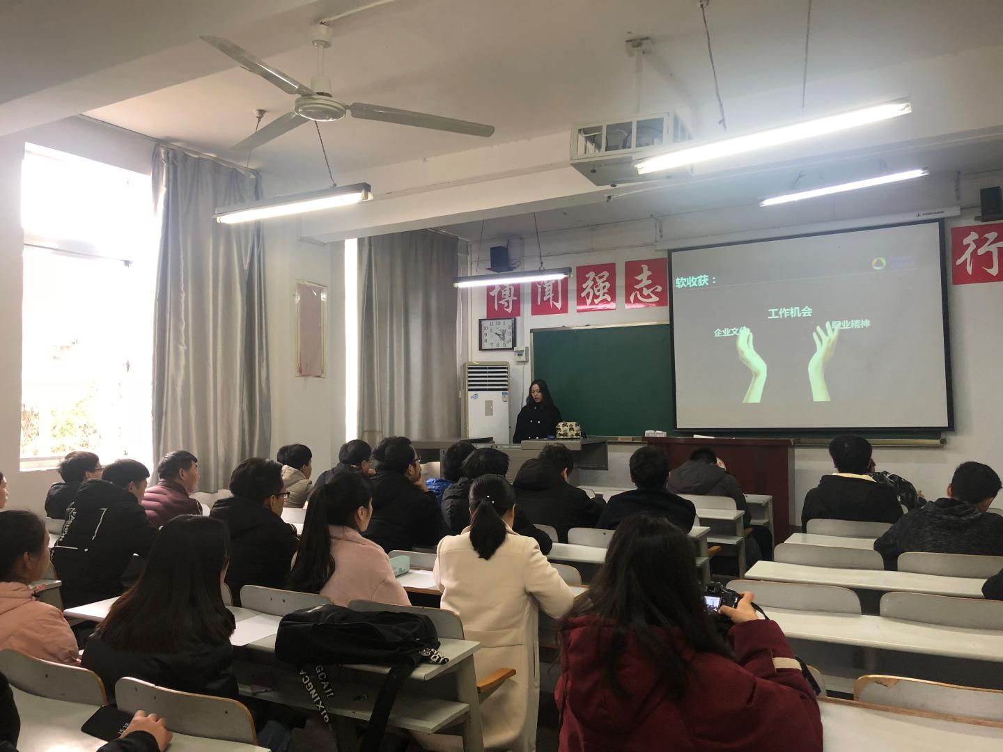 招聘会伊始,徐乙丹以ppt的形式就本公司相关情况进行了介绍,包含工作业务的认识,规章制度的明确,福利待遇的讲解,对于现有的公司成就、产业结构、人员分配等几个方面也向同学们做了相关介绍,并组织现场互动,对同学们的疑问做出解答。部分同学初步达成了就业意向。