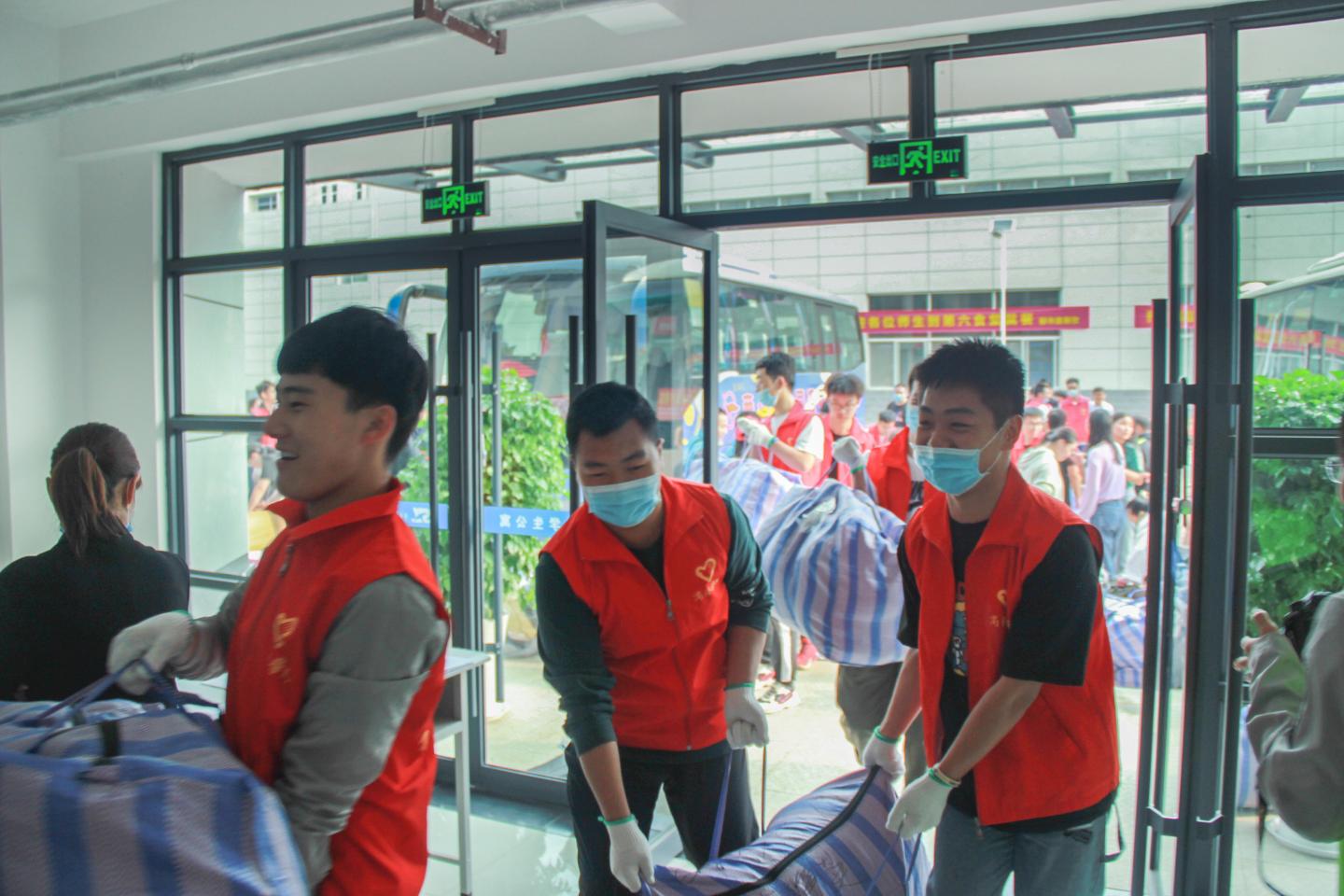 到达丹江校区后,校团委副书记廉明首先做动员讲话,强调了本次活动的安全问题及注意事项,并为公司志愿者们分发了手套。随后志愿者们齐心协力、科学有序、安全高效的帮助兄弟公司完成了校区搬迁工作。