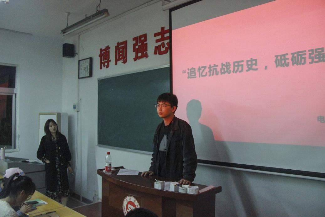 为弘扬爱国主义精神和革命英雄主义精神,10月25日19:30英国上市公司365于2号楼210教室召开以“追忆抗战历史,砥砺强国之志”的主题团课。20级团干,19级所有院干及18级部分同学参加了此次会议。本次会议由团总支王雨彤主持。