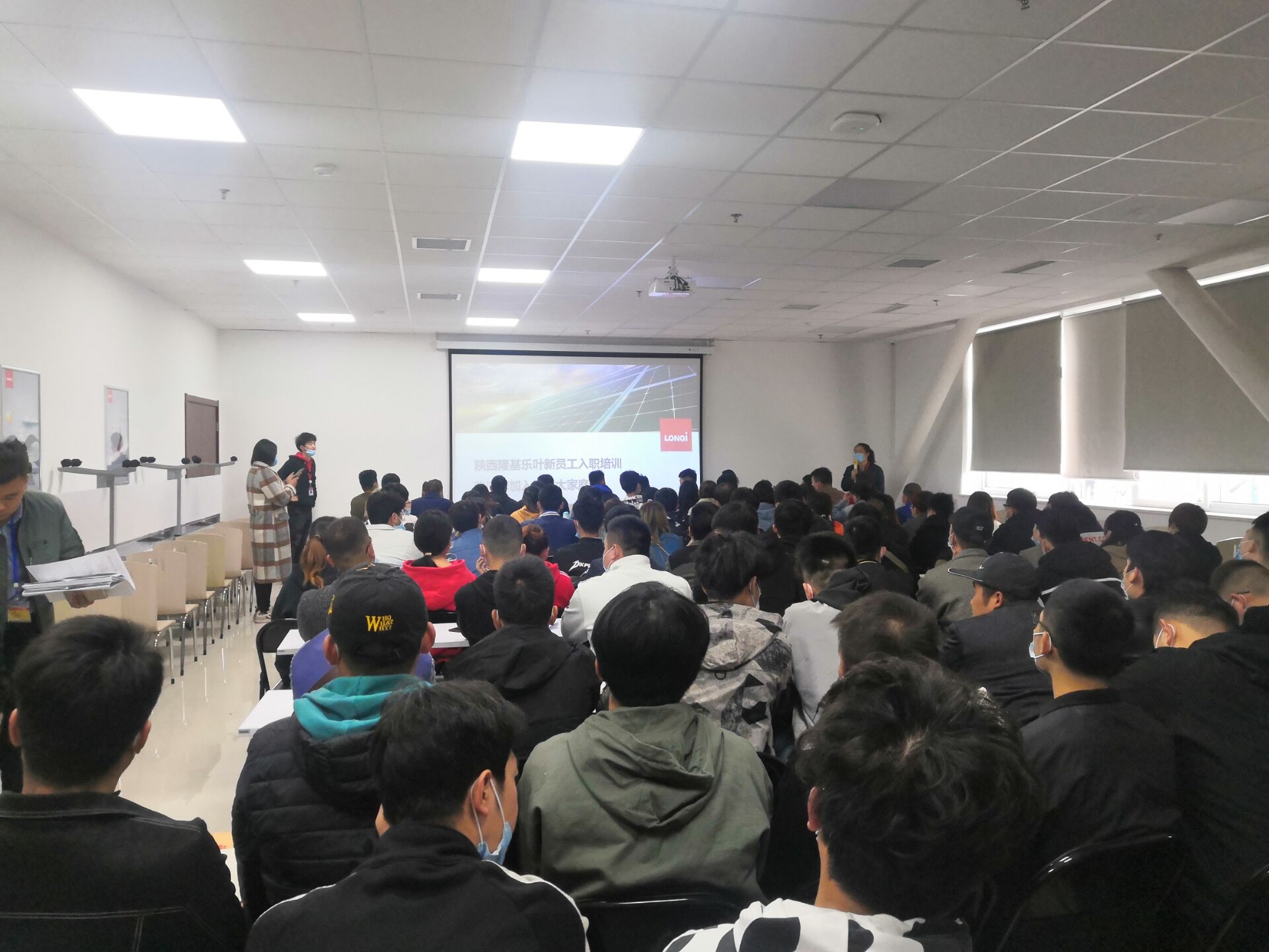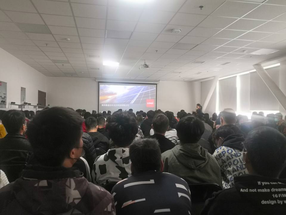 陕西隆基乐叶光伏科技有限公司位于陕西高陵,主要从事光伏发电技术研发、技术服务;太阳能电池、太阳能电池组件、太阳能光伏发电系统设备的研发、生产、销售;太阳能光伏发电项目设计、建设、运营等业务。员工入住陕西高陵公司阳光馨园公寓楼后,11月3—4日,公司安排了员工体检和岗前培训、考试和军训。员工将于11月6日正式开展生产实习。