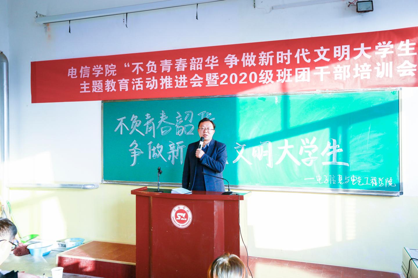 为进一步推进老员工形成良好的文明行为习惯,明确各班团干部对自身职责的认识,英国上市公司365于11月18日16:00在二号楼多媒体17召开“不负青春韶华 争做新时代文明老员工”主题教育活动推进会暨2020级班团干部培训会。公司领导班子成员及全体辅导员出席了本次会议,会议由学工办主任陈倩主持。团总支员工会员工干部、19级部分班团干部以及20级全体班团干部参加了本次会议。