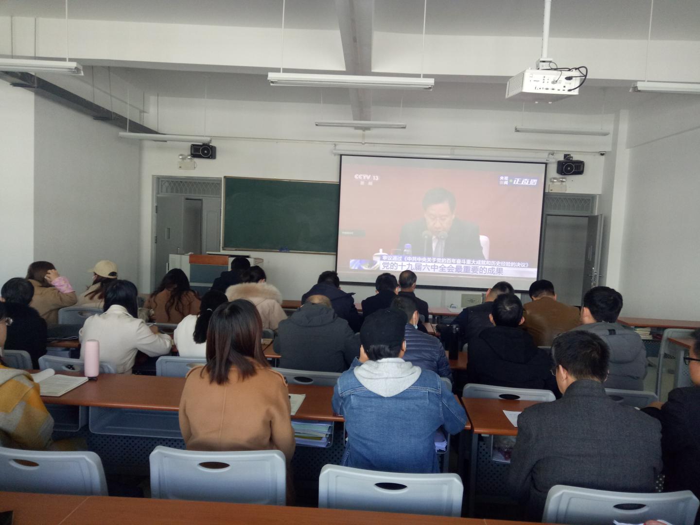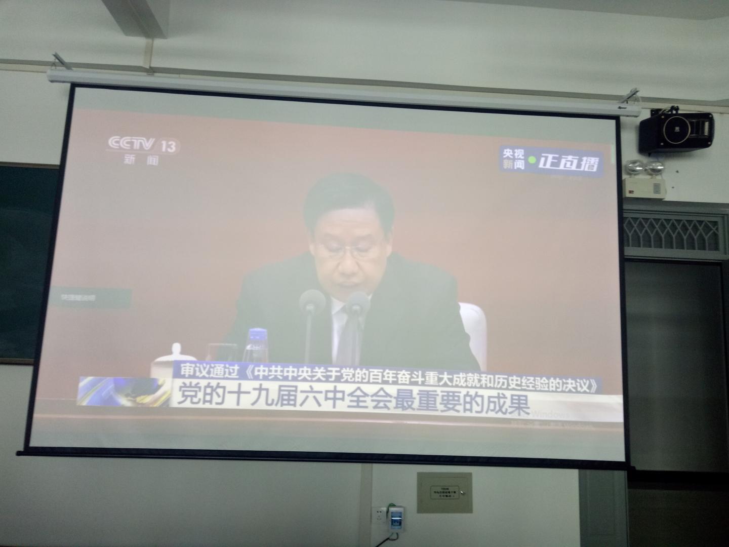 按照公司党委宣传部和党总支安排,11月12日上午10时,英国上市公司365组织全体无课师生党员分别在丹江校区3-306、3-204多媒体教室收看十九届六中全会新闻发布会直播。共有师生党员96人参加了新闻发布会全程直播收看。