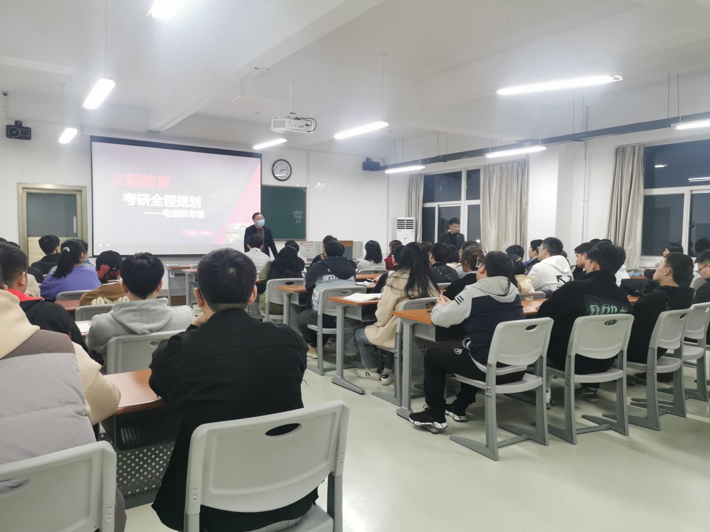 3月7日晚,英国上市公司365在丹江校区3-201、3-204教室召开2019级考研动员宣讲会,会议采用线上线下相结合的方式进行。会议由经理袁训锋主持。文都考研全国巡讲师马回峰、文都教育郭鑫老师、辅导员吴茜老师、2019级80名考研学子参加了宣讲会。