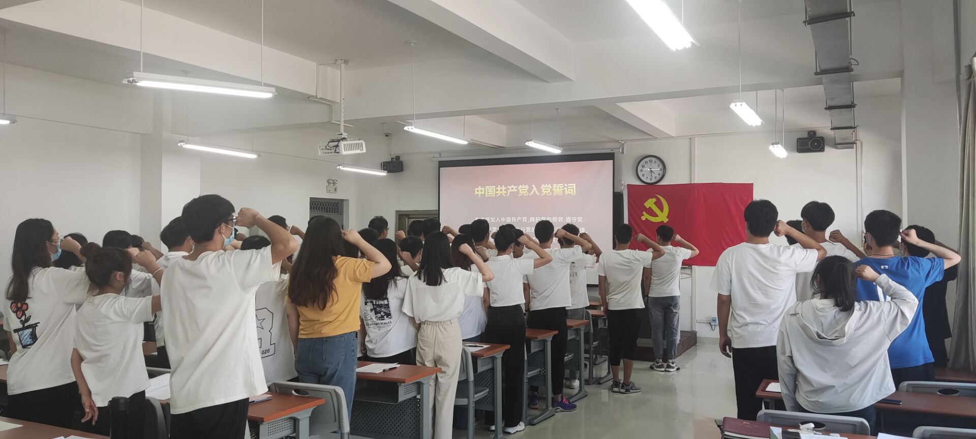 会上,主持人孙凯介绍了参会人员,23名预备党员逐一向党组织汇报自己志愿加入中国共产党的决心及在预备期内的思想表现和现实表情况,入党介绍人分别就联系培养的预备党员在预备期内的培养考察情况及其表现做了汇报说明,并发表了对预备党员是否能按期转正的个人意见。最后支部大会采取无记名投票的方式进行表决,一致同意孙皓楠等23名预备党员按期转为中共正式党员。会后,全体党员进行了庄严宣誓,重温了入党誓词。