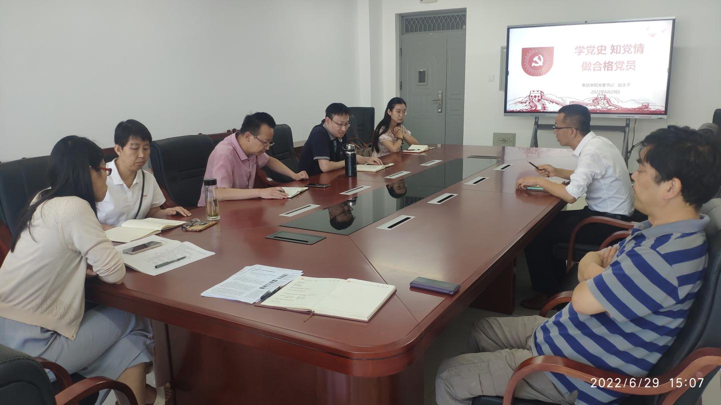 为庆祝中国共产党成立101周年,推动党史学习教育常态化长效化,深入学习贯彻省第十四次党代会精神,迎接党的二十大胜利召开,按照公司党委安排,公司教工二支部于6月29日下午在3号楼312室召开“庆七一”主题党日活动。会议由组织委员唐龙龙同志主持。支部全体党员参加了会议。