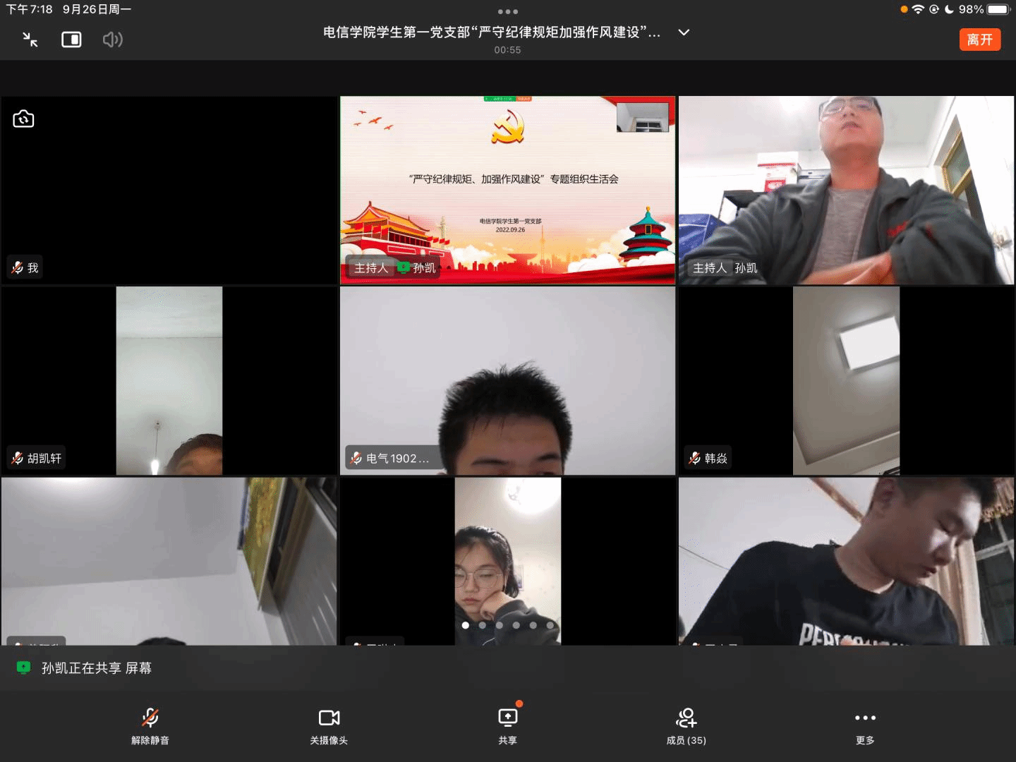 9月26日,各支部在线上召开“严守纪律规矩、加强作风建设”专题组织生活会,全体党员结合集体学习、个人自学、党规党纪知识测试和警示教育活动的收获,结合岗位职责和履职尽责等个人实际情况,谈认识、谈体会,深刻开展批评与自我批评,支部全体党员从支部发展建设、支部理论学习、支部党建实务、党员发展、三会一课制度的落实等方面查摆支部所面临的问题,并提出自己的改进建议。会上党员同志们直面问题、坦诚相见,实事求是地提出相应的批评意见,同时虚心听取各种批评与建议,在严肃认真的会议氛围中成功召开此次专题组织生活会。
