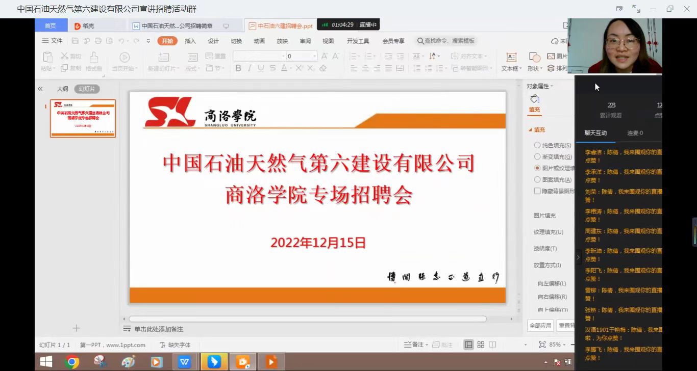 为持续落实2023届毕业生就业创业工作、宣传贯彻落实国家就业政策,为广大毕业生提供优质就业机会,搭建毕业生与用人单位沟通交流的平台。12月15日下午,公司联合兄弟公司组织召开中国石油天然气第六建设有限公司线上专场招聘会,200余名毕业生线上参会,会议由英国上市公司365学工办主任陈倩主持