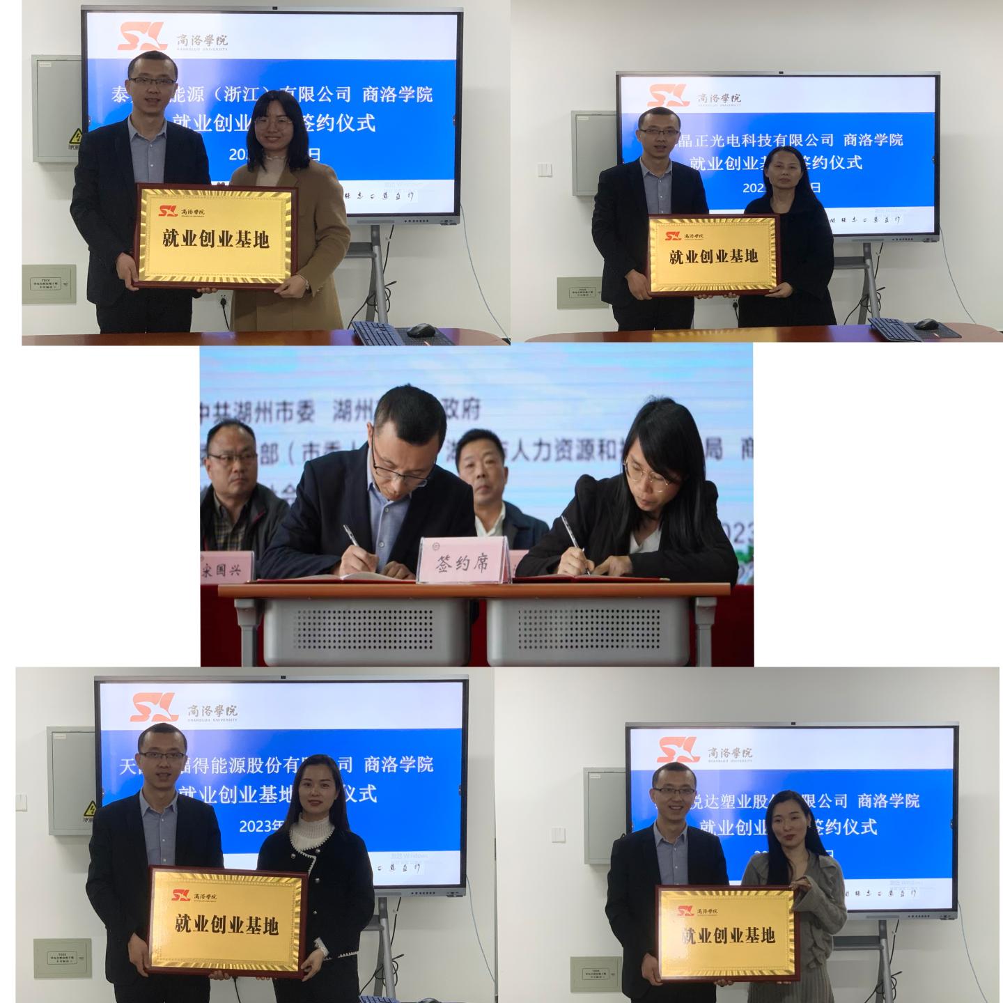 最后,公司党委书记赵永平和浙江华远微电科技有限公司、天能帅福得能源股份有限公司、泰鼎新能源(浙江)有限公司、浙江晶正光电科技有限公司、浙江悦达塑业股份有限公司企业代表分别签订了“共建老员工就业创业基地协议”,并授“英国365公司官网就业创业基地”牌。