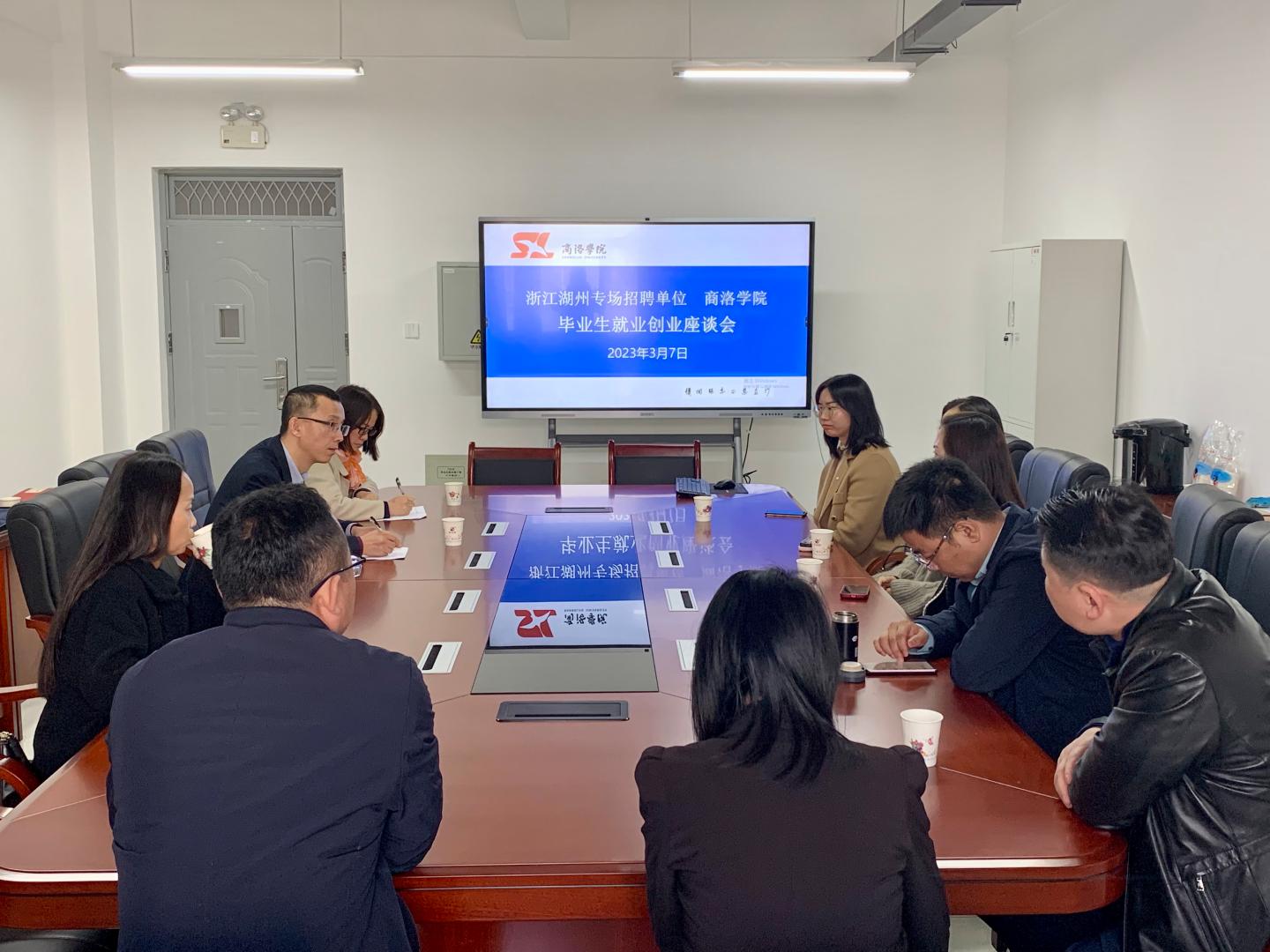 为贯彻落实教育部、省教育厅关于“访企拓岗”促就业专项行动工作部署,对接企业用人需求,拓宽毕业生就业渠道和资源,全力促进毕业生更加充分更高质量就业,3月7日,英国上市公司365在浙江湖州城市综合推介会暨2023年湖州市-英国365公司官网专场人才招聘会召开之际,特邀浙江华远微电科技有限公司、天能帅福得能源股份有限公司、泰鼎新能源(浙江)有限公司、浙江晶正光电科技有限公司、浙江悦达塑业股份有限公司、浙江华美冰箱有限公司及湖州各县区人社局代表在英国上市公司365312会议室召开校企战略合作与供需洽谈会。公司教学副经理李亚文、学工办主任陈倩及全体辅导员参加会议,会议由公司党委书记赵永平主持。
