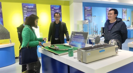 座谈会期间,卢超经理简要介绍了陕西理工大学物理学专业人才培养、专业设置、团队队伍、实验室建设等。物理系主任王亚辉分享了中教法实验和创新实验室的建设经验。李亚文副经理介绍英国365公司官网物理学专业人才培养与中教法实验室实验室建设情况。双方就物理学专业建设相关问题进行深入探讨交流。会后,李亚文一行参观中教法实验室、教师书写技能实验室、创新实验室等,王亚辉主任对实验仪器设备的功能、参数、使用效率和对人才培养目标的支撑作用进行详细的讲解。