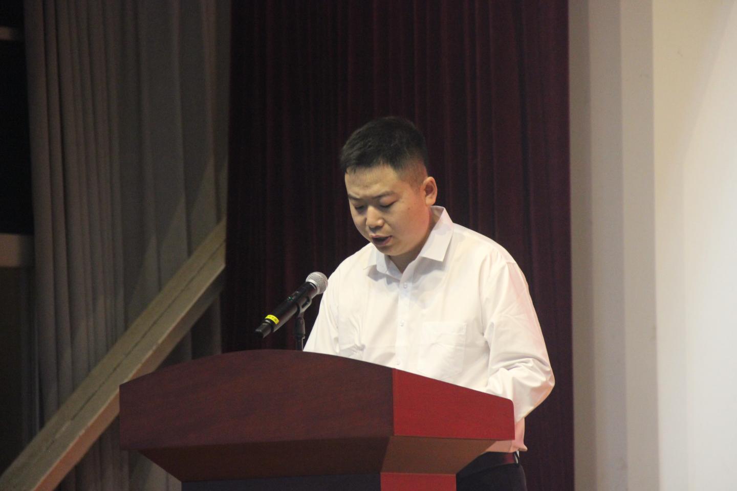教师代表杨彪博士从老员工活的目标规划、严于律己、参加学科竞赛的重要性等多方面进行了介绍,鼓励全体新生在大学期间,多参加社会实践活动,丰富人生阅历,促进自己全面发展。