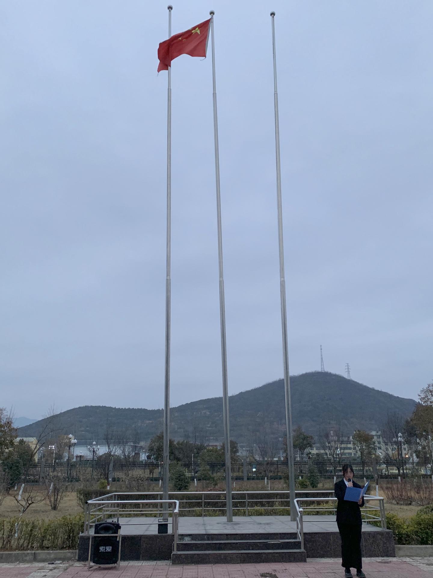 早晨7点,参加升旗仪式的师生列队整齐、精神饱满,伫立在升旗台前。在全院师生的注目礼下,国旗护卫队迈着铿锵有力的步伐护送国旗至升旗台。7点10分,在雄壮的国歌声中,鲜艳的五星红旗冉冉升起,迎风飘扬。全体师生神情肃穆,齐唱国歌,向庄严的国旗表达最崇高的敬意。