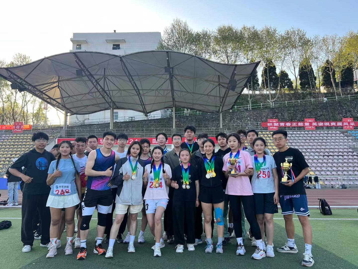本次运动会公司全体运动员们刻苦训练、奋勇争先,大家都以昂扬的斗志、饱满的热情为自己和公司赢得荣誉。在所有运动员们的努力下,公司共赢得36枚奖牌,其中金牌6枚,银牌14枚,铜牌16枚。特别是电科2203班的于佳顺同学在男子铅球比赛中成功打破公司记录,这也是今年公司运动会中唯一的1项破校运动会纪录。