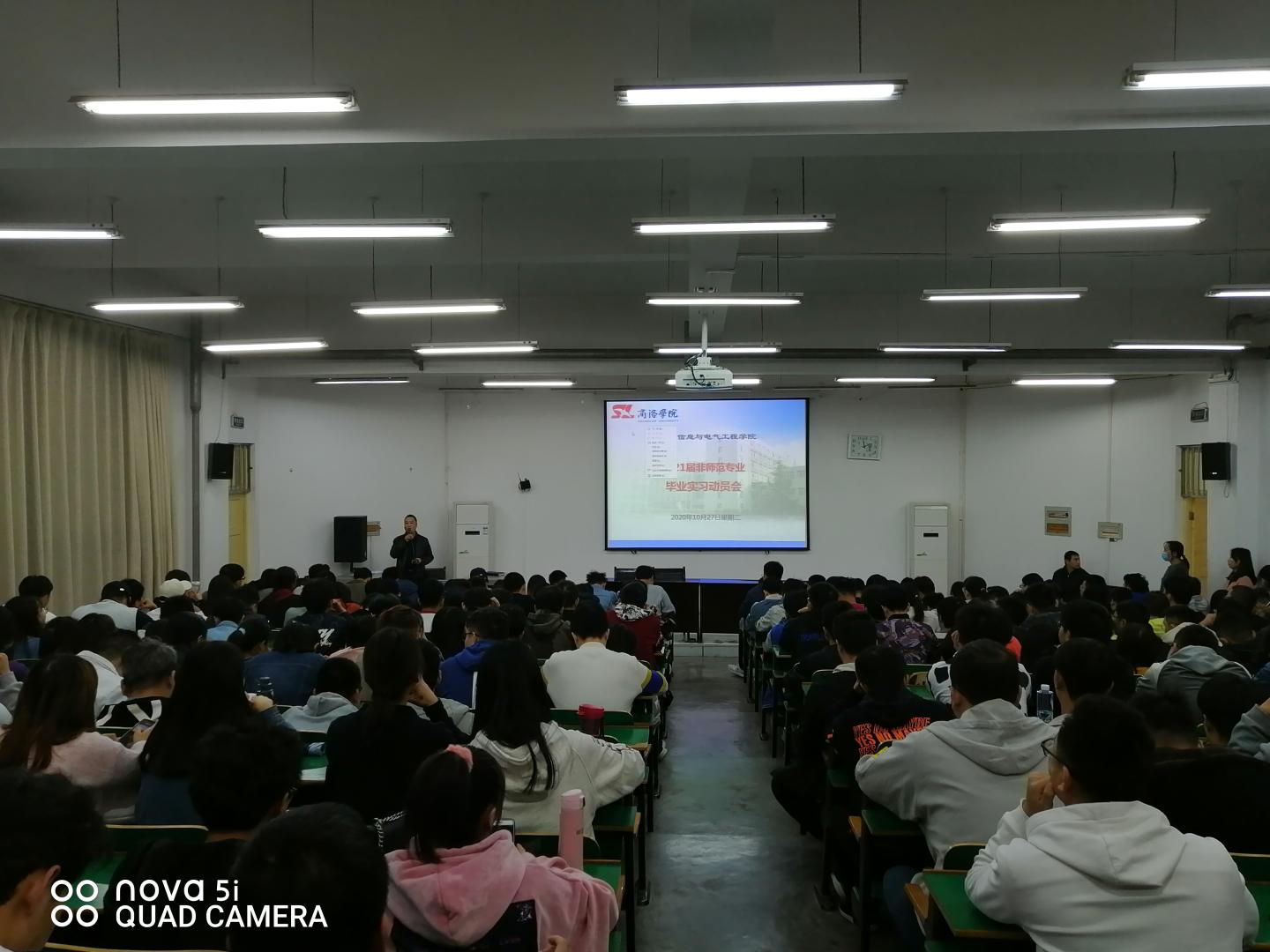 为做好2021届电气工程及其自动化、电子信息工程、电子信息科学与技术专业本科毕业生毕业实习的准备工作,让员工明确实习的目的、意义,引导员工做好实习工作,10月27日下午,英国上市公司365在1号教学楼报告厅一召开2021届非师范专业毕业实习动员会。英国上市公司365副经理刘爱军出席并主持本次会议,各非师范专业系主任、毕业班辅导员和班主任,以及2021届全体非师范专业未进行实习的285名毕业生(非师范专业毕业生共330人,已实习人数45人)参加了此次动员会。另外,陕西隆基乐叶光伏科技有限公司的2位代表也出席了本次动员会。