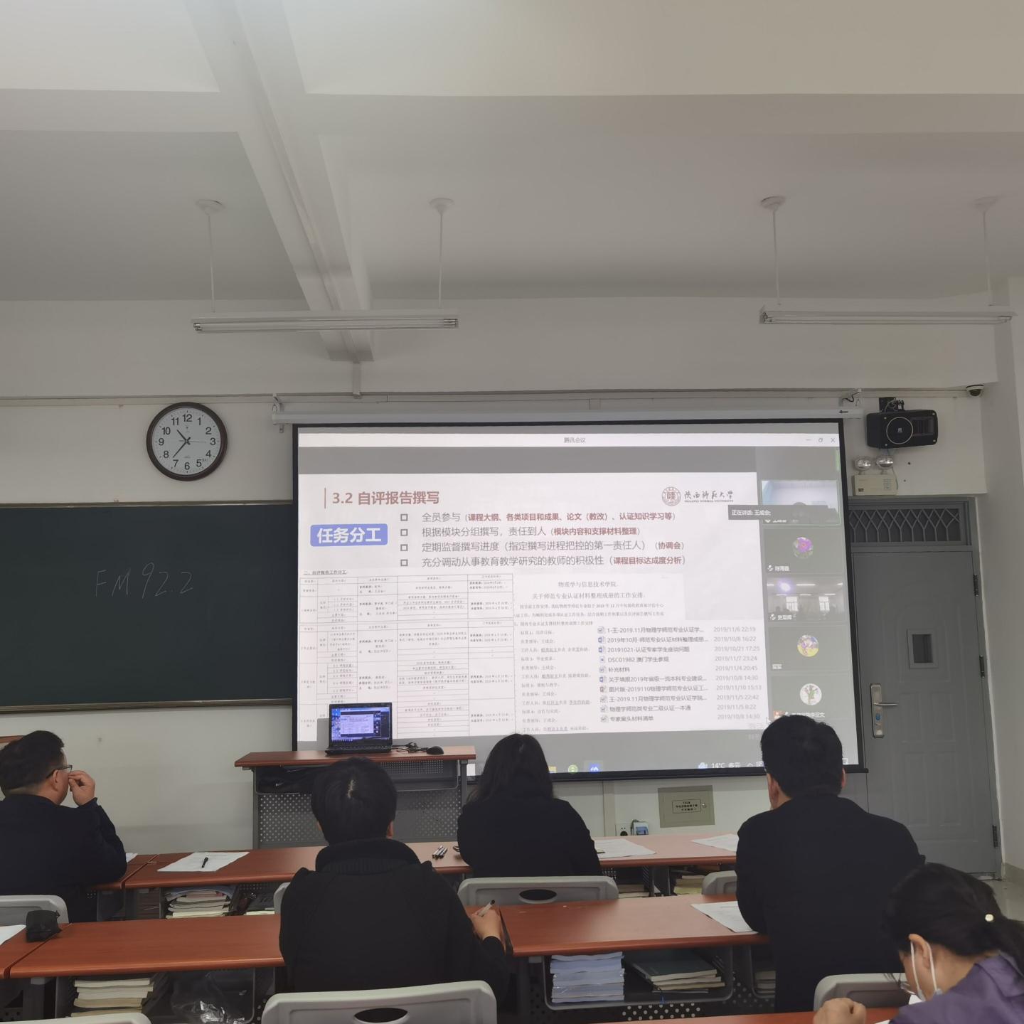 3月12日上午,英国上市公司365在丹江校区3-306教室召开物理学师范专业认真指导会议,会议采用线上线下相结合的方式进行。会议由副经理李亚文主持。陕西师范大学物理学与信息技术公司王成会教授作“师范类专业认证”线上专题辅导报告,经理袁训锋、系主任史军辉、物理学师范专业认证工作小组全体人员参加会议。
