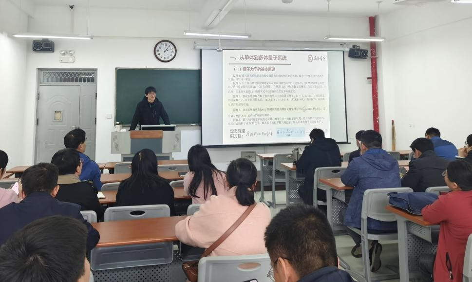 谭小东博士首先介绍了“二次量子化”和“格林函数”两种重要的量子力学方法,结合自身在石墨烯纳米带自旋输运方面的研究成果,以石墨烯纳米带中的自旋输运为例,展示了如何利用二次量子化和格林函数方法进行理论计算和分析,为量子多体问题的处理提供了新思路。随后,谭小东博士与在场教师进行了热烈交流,并对大家提出的问题进行了耐心解答。讲座内容丰富,案例生动,引发了在场教师的浓厚兴趣。