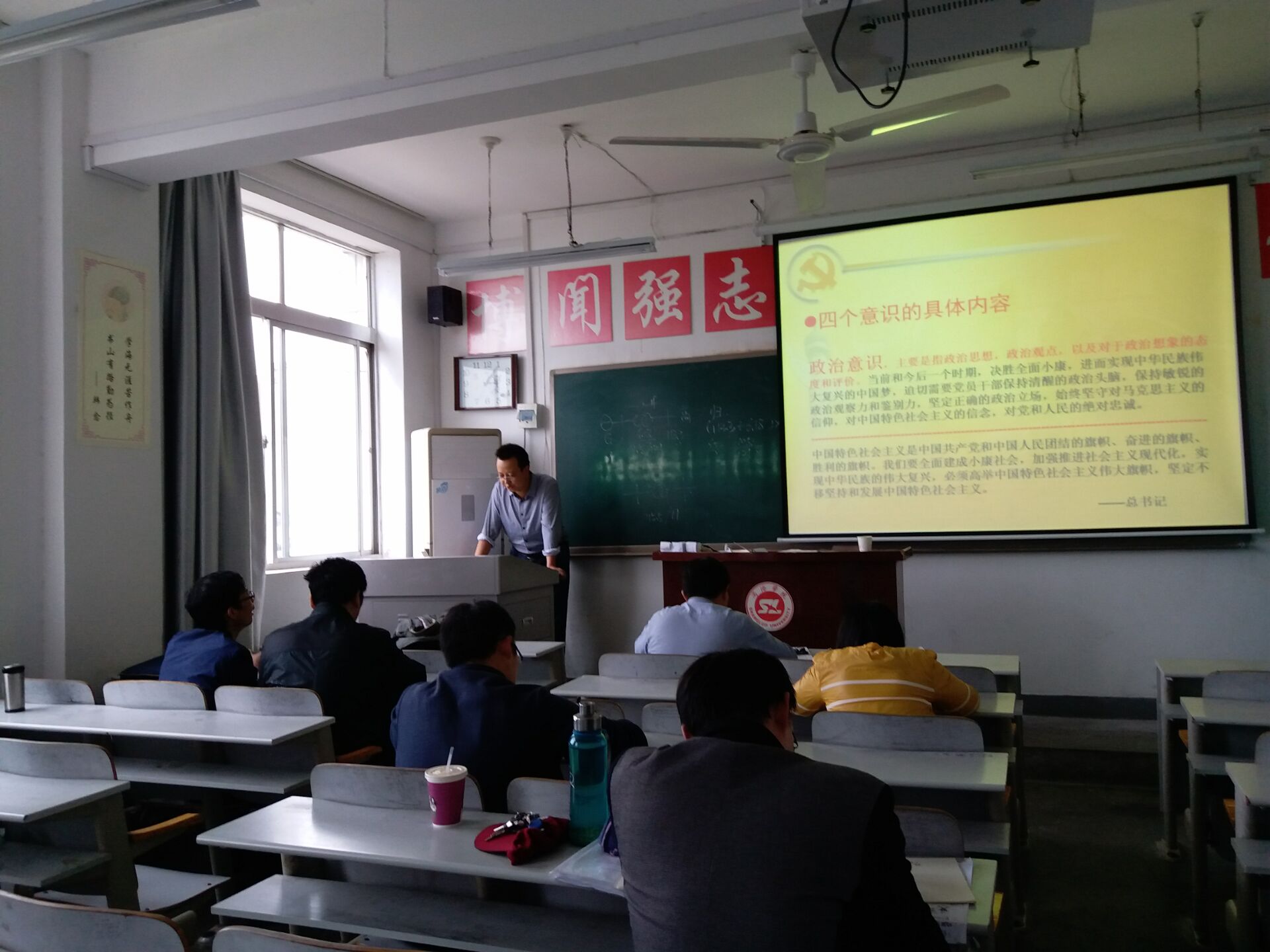 谢谦同志分别从“四个意识”的提出和含义、“四个意识”的体现和党员干部要自觉增强“四个意识”三个方面详细地为同志们解读了增强“四个意识”的重要性、必要性和深刻内涵以及如何在工作和生活中增强“四个意识”,做合格党员。谢谦在讲课中指出,党员要自觉增强政治意识、大局意识、核心意识和看齐意识,始终做到坚持正确的政治方向,主动地经常地全面地向以习近平同志为核心的党中央看齐,始终保持大局意识,把锤炼党性修养作为党员终身的必修课。
