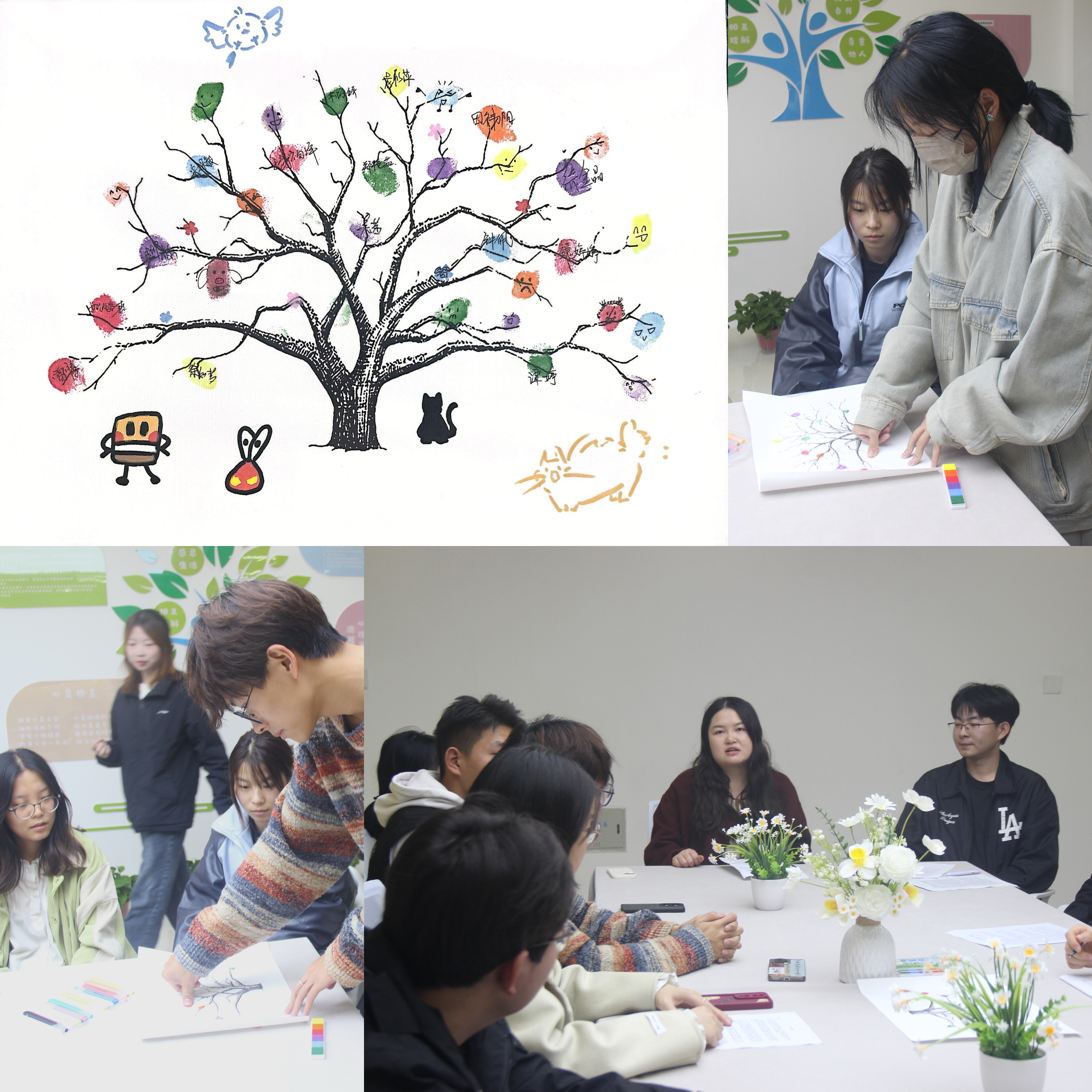 活动伊始,大家在指纹签到树上使用彩色印泥拓下树叶,以独特且轻松的方式完成签到。吴茜老师给大家介绍了此次活动的背景和目的,着重强调员工党支部在朋辈帮扶中的重要性。