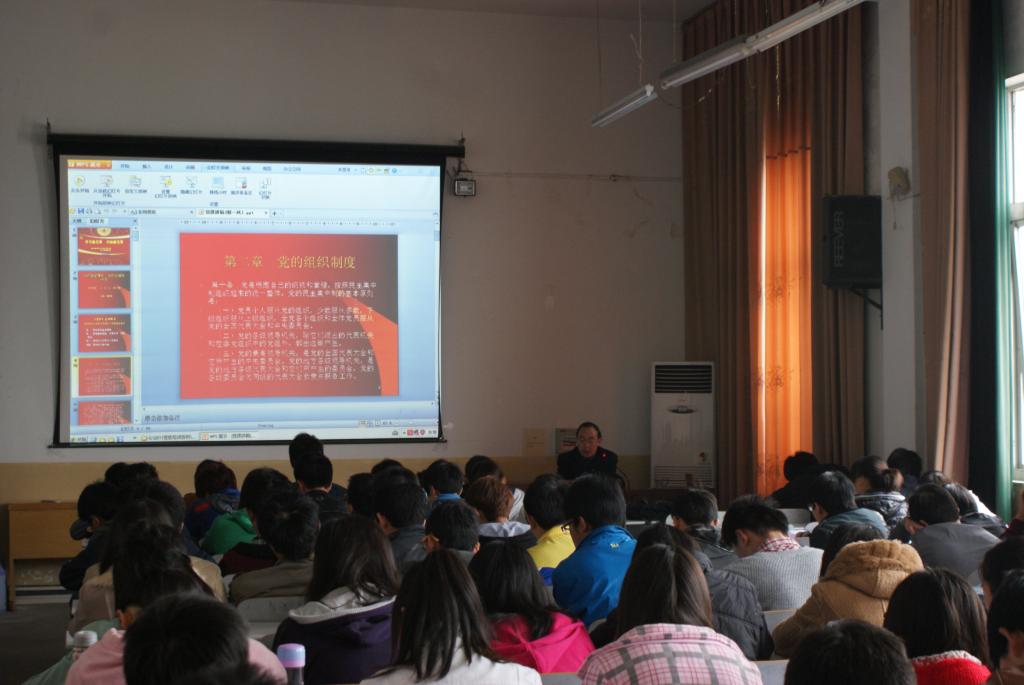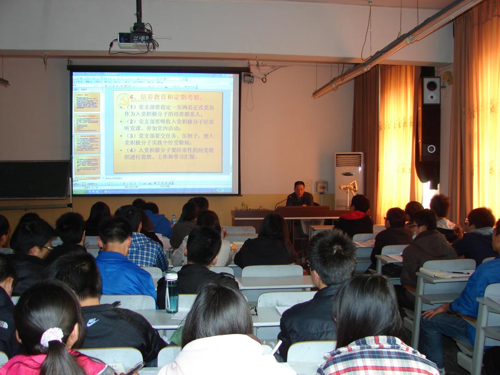 本次党课每班上课时间分别为20课时,授课老师分别为系党总支委员、党政办公室主任杨延锋老师,辅导员魏书灵副教授,辅导员陈倩老师以及李磊老师。培训过程中,杨延锋老师从“入党必须履行的手续和党员的培养教育”两方面为所有积极分子做了深刻详细的讲解。魏书灵老师从“中国共产党的组织原则、作风和纪律;党员先进性教育专题”等几个方面进行了全面讲解。我系辅导员李磊就“党的性质、党的指导思想、党的纲领、党的历史”四个方面结合自己所学专业为同学们上了一堂生动有趣的课程。并提出了“怎样认识中国梦”等问题让大家进行讨论。陈倩老师就党员的权力和党员的义务为大家做了详细解说,使同学们更加深刻明确了党员的权利和义务。课程知识点虽然繁多,但是老师们有理有据,声情并茂,语言生动,课堂气氛轻松活跃。
