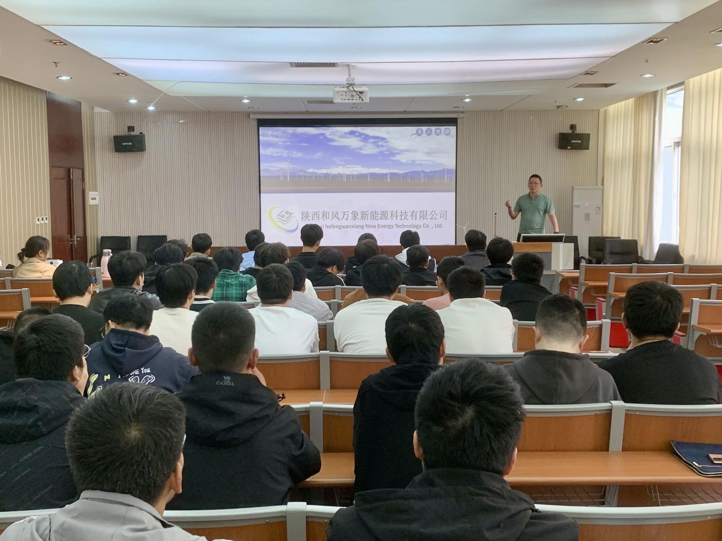 毛经理向在座毕业生介绍了陕西和风万象新能源科技有限公司的基本情况,从企业发展、岗位设置、专业需求、薪资福利、职业发展等方面作了详细的说明。宣讲会结束后,现场进行了简历收取和初步面试,部分毕业生和企业初步达成了就业意向。