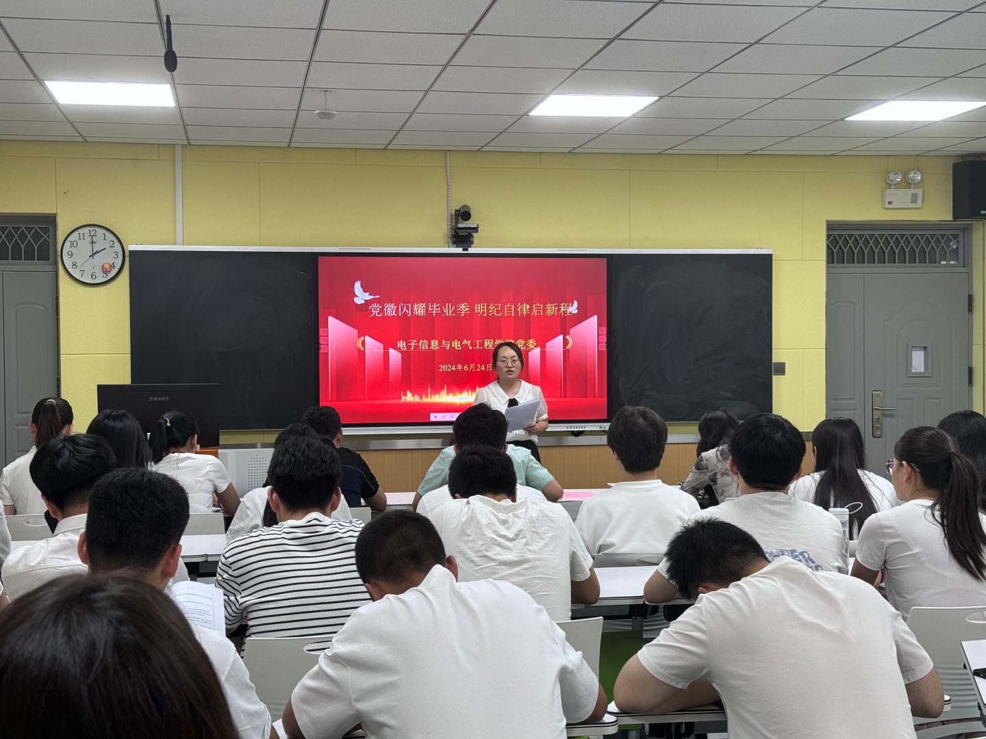 “寄语青春 奔赴未来”毕业生遵规守纪教育主题班会。6月27日,各系主任、班主任、毕业班辅导员以专业为单位召开“寄语青春 奔赴未来”主题班会,师生间结合专业发展和毕业规划进行了充分的思想和专业交流。