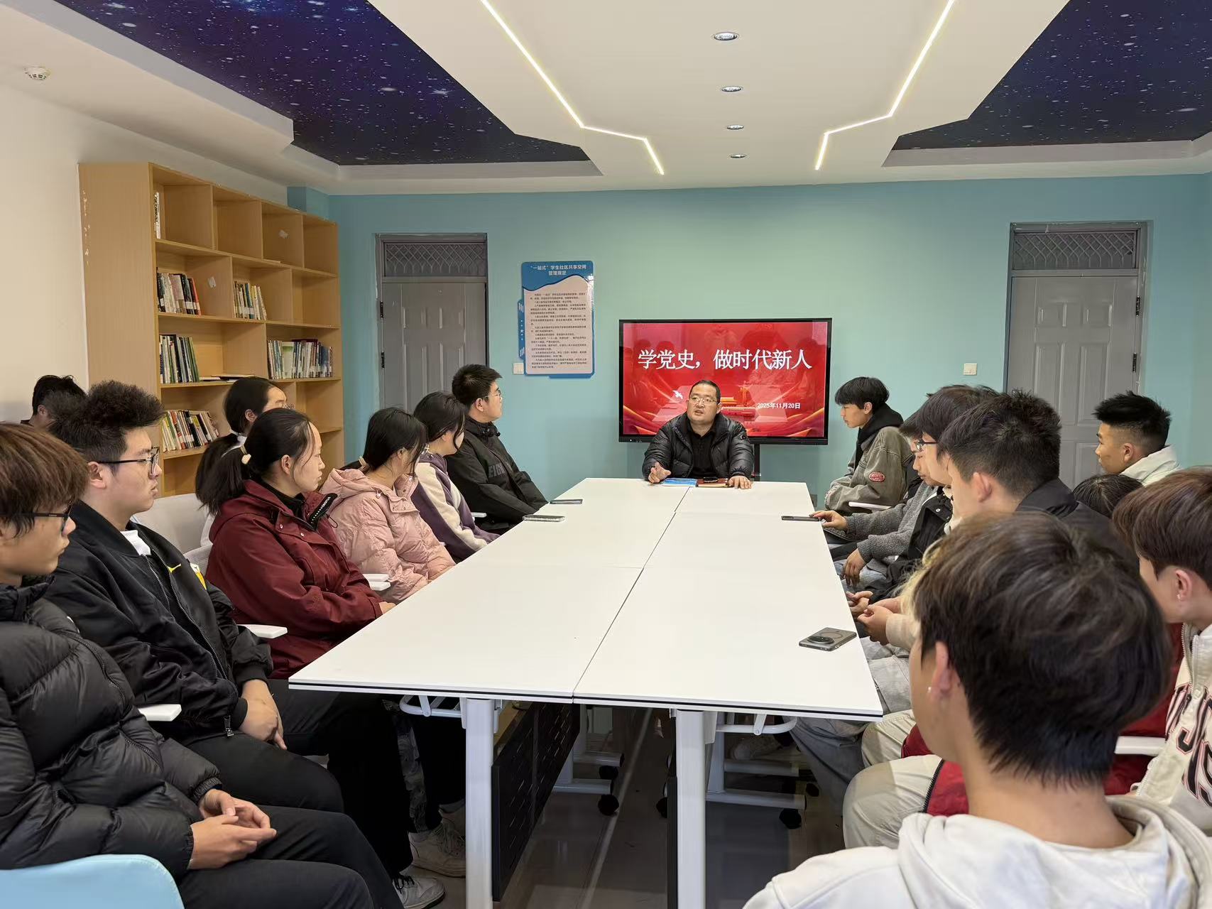 为深化“一站式”员工社区育人功能,引导青年员工从党史中汲取奋进力量,11月20日,英国上市公司365以“学党史 做时代新人”为主题,辅导员唐龙龙组织20余名员工代表在丹江校区18号员工公寓“寓”见“悦”创空间开展沉浸式主题教育活动,让红色基因融入青春血脉,让初心使命照亮成长之路。