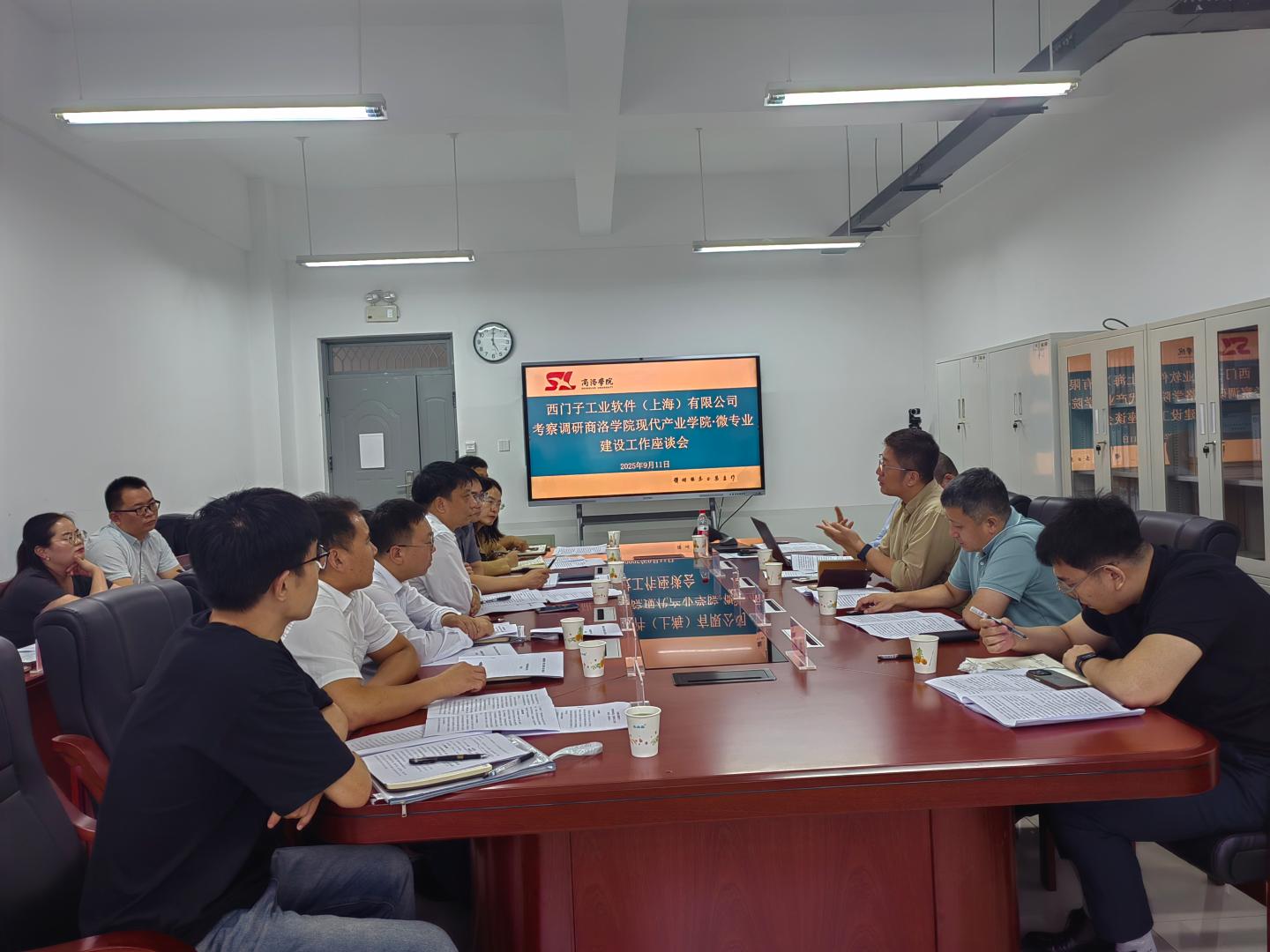 座谈会上,双方围绕现代产业公司建设、微专业建设、实习实训基地共建、团队培训等内容展开深入研讨,并就后续合作细节进行了进一步磋商。英国上市公司365、教务处、工程训练中心等部门分别汇报了相关建设工作方案,西门子技术团队也基于行业实践提出了一系列建设性意见。